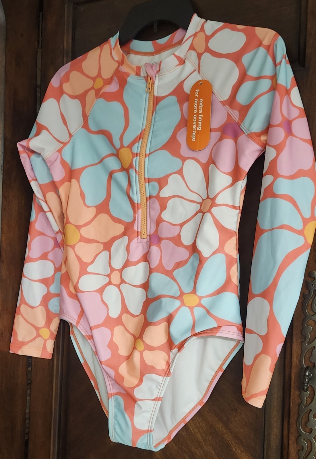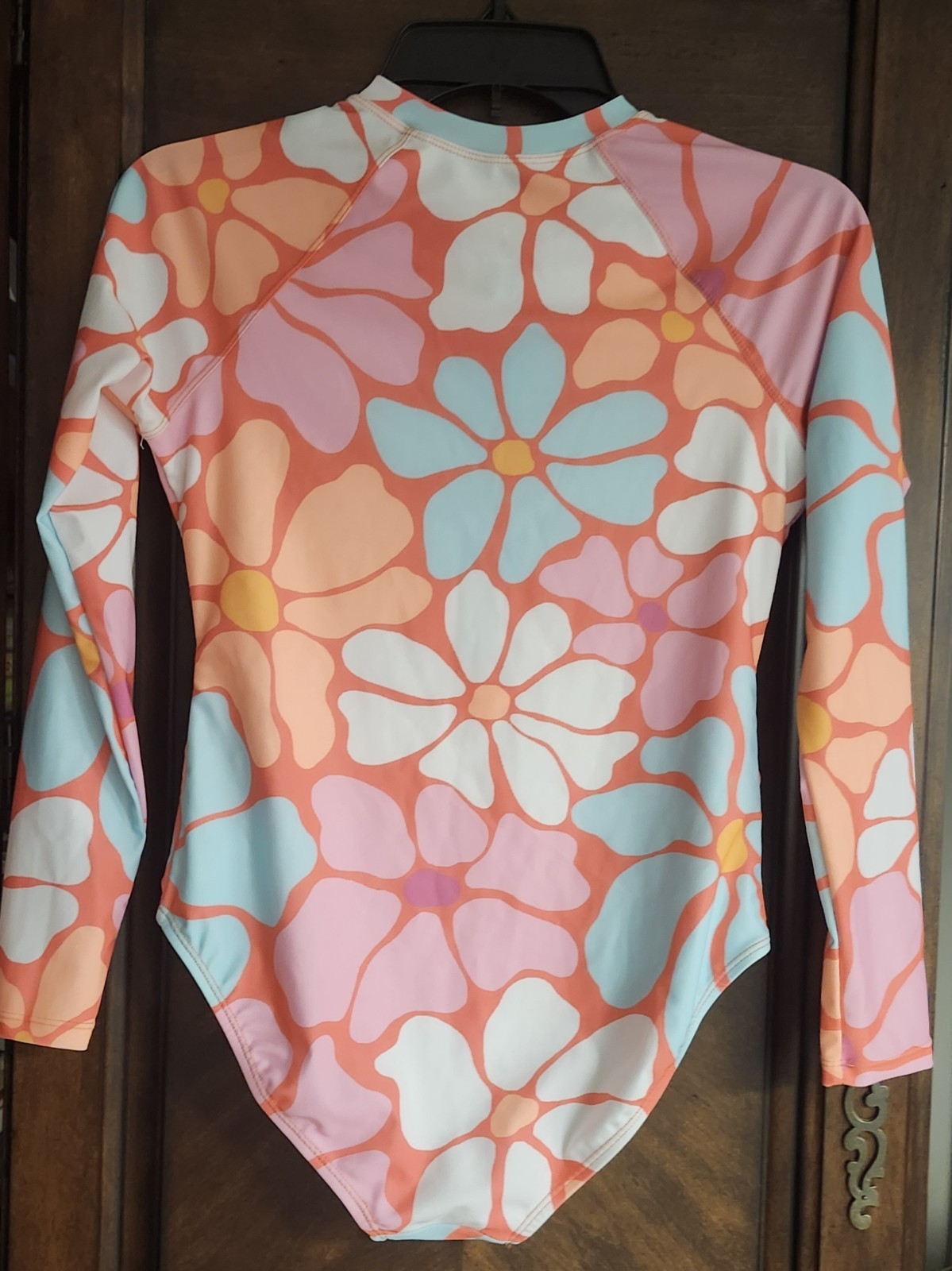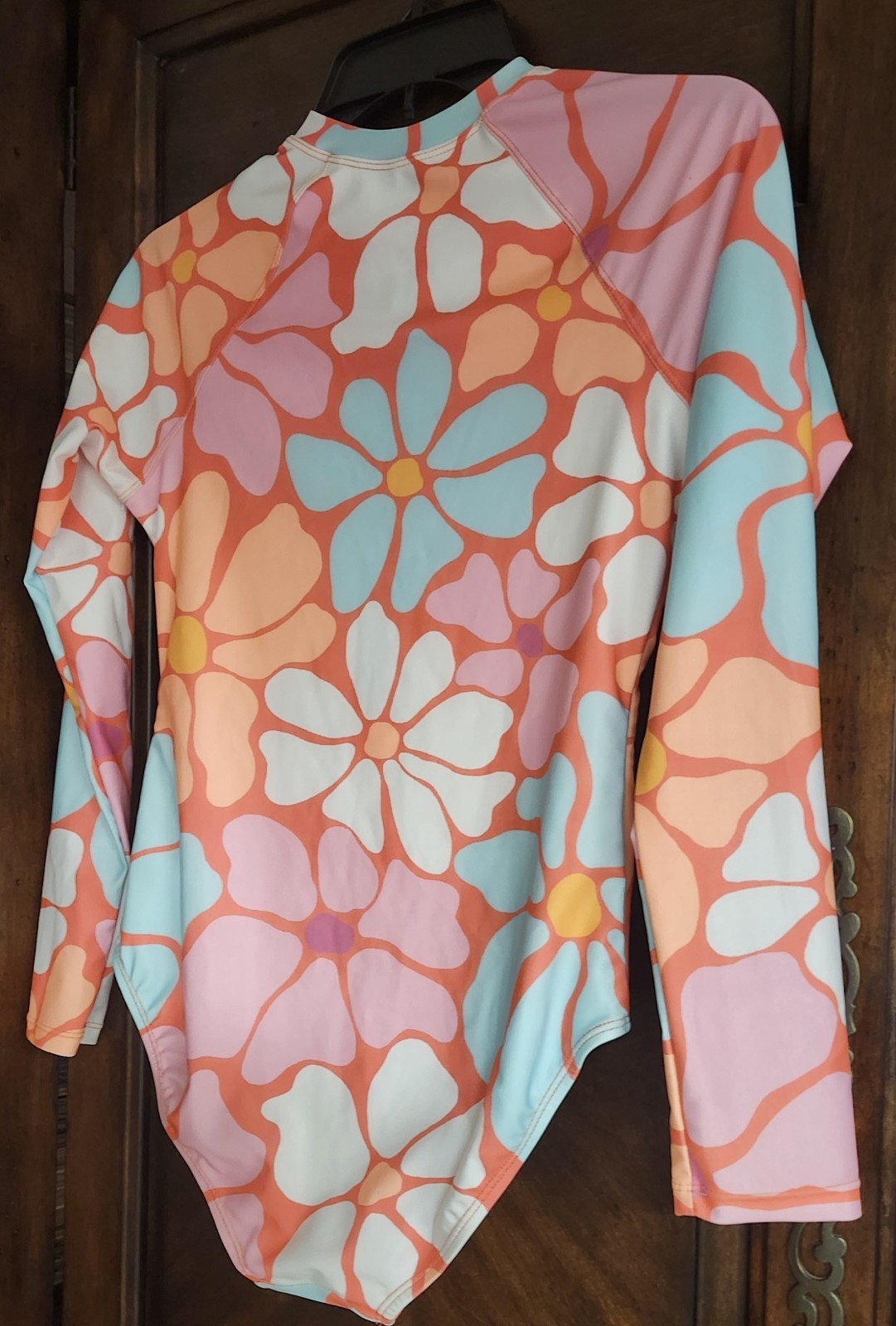 Wonder Nation Girls Long Sleeve ZipUp Rash Guard 1PC Swimsuit SZ XL 14/16 UPF 50
