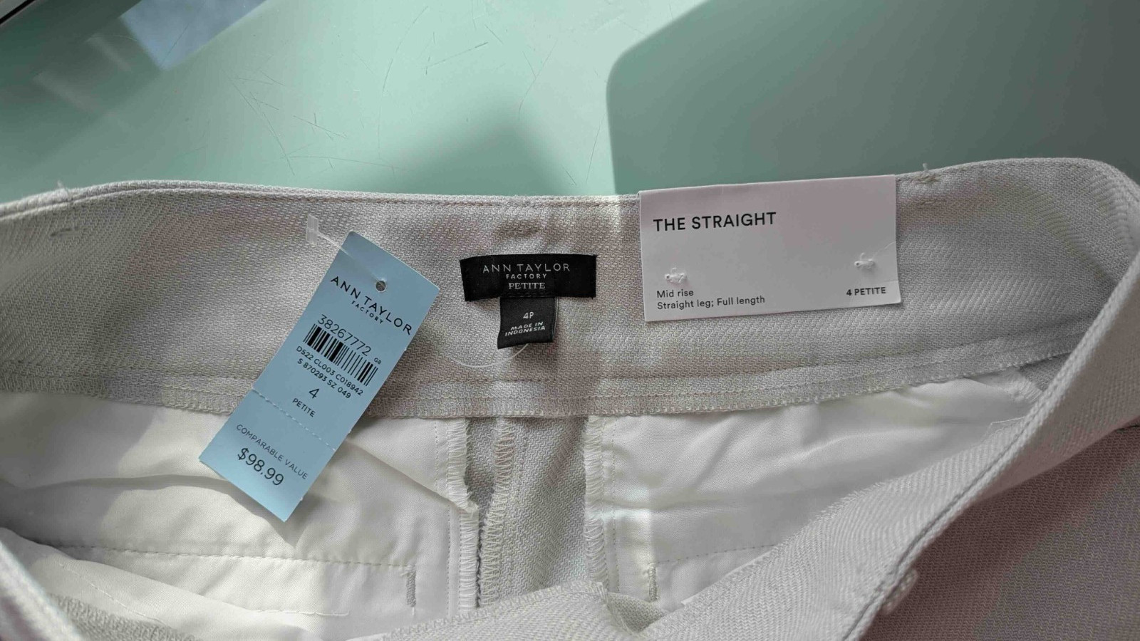 как выглядит Ann Taylor Factory The Straight Pant 4Petite Mid Rise Spring/Summer Light Gray фото