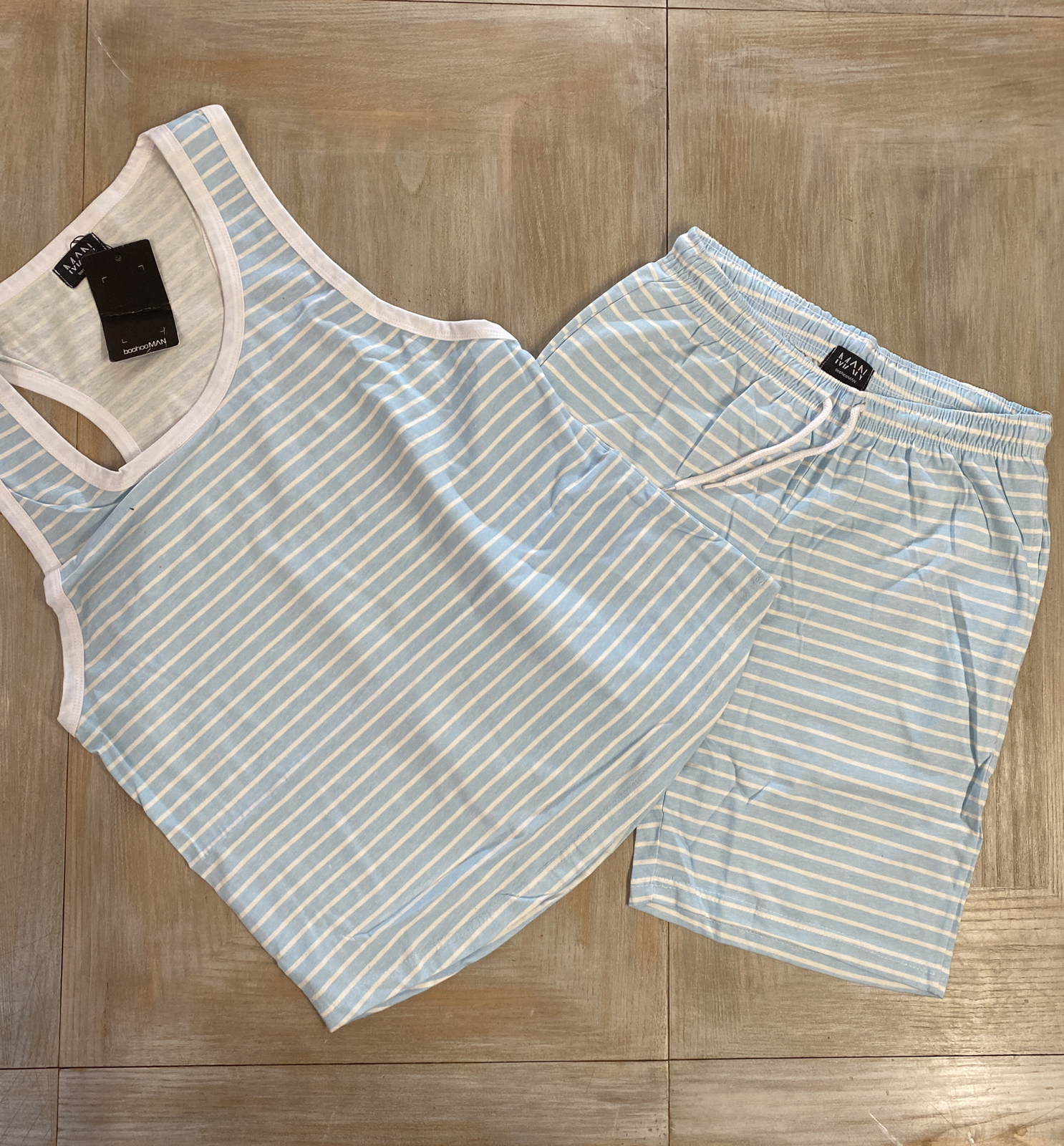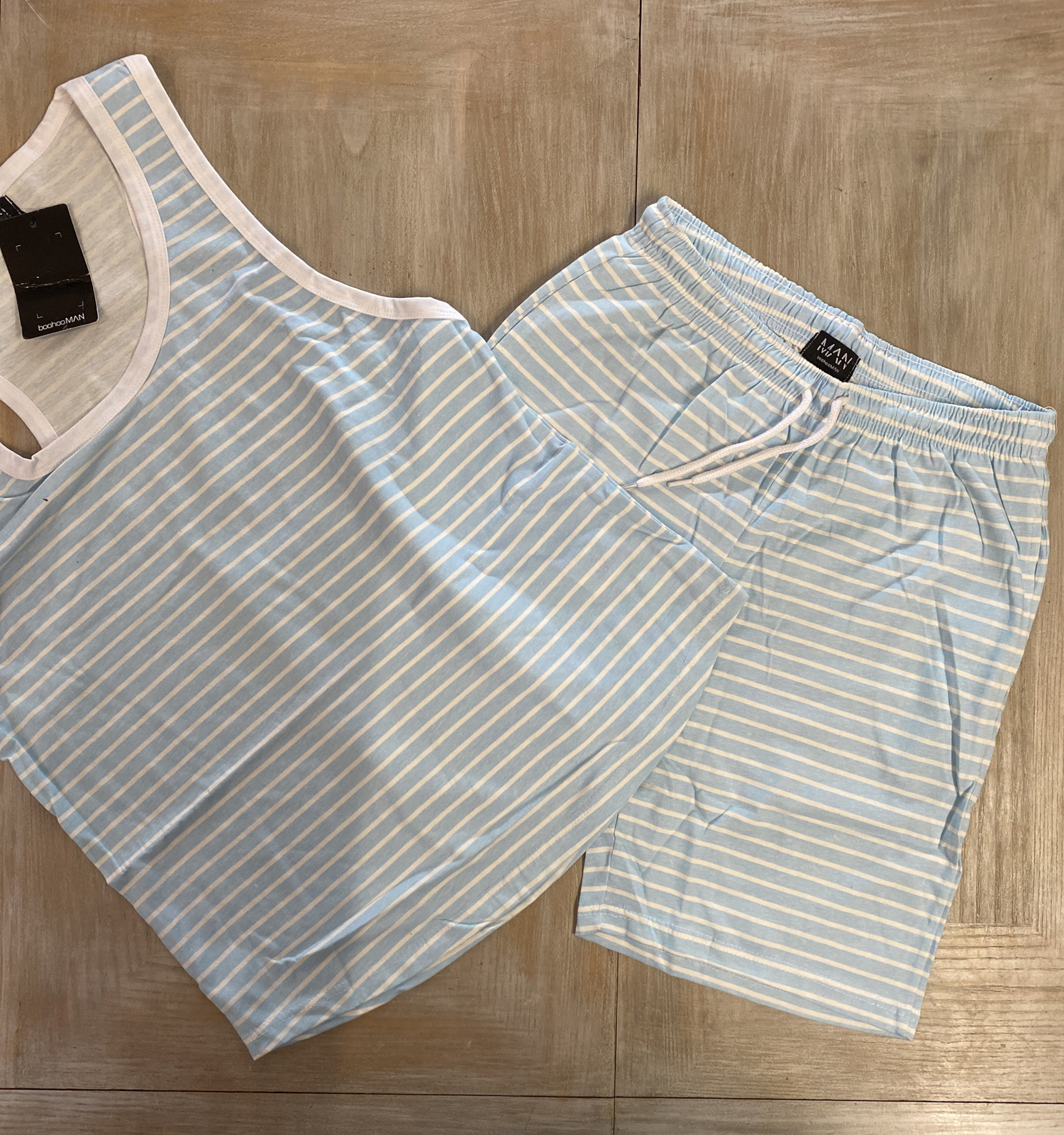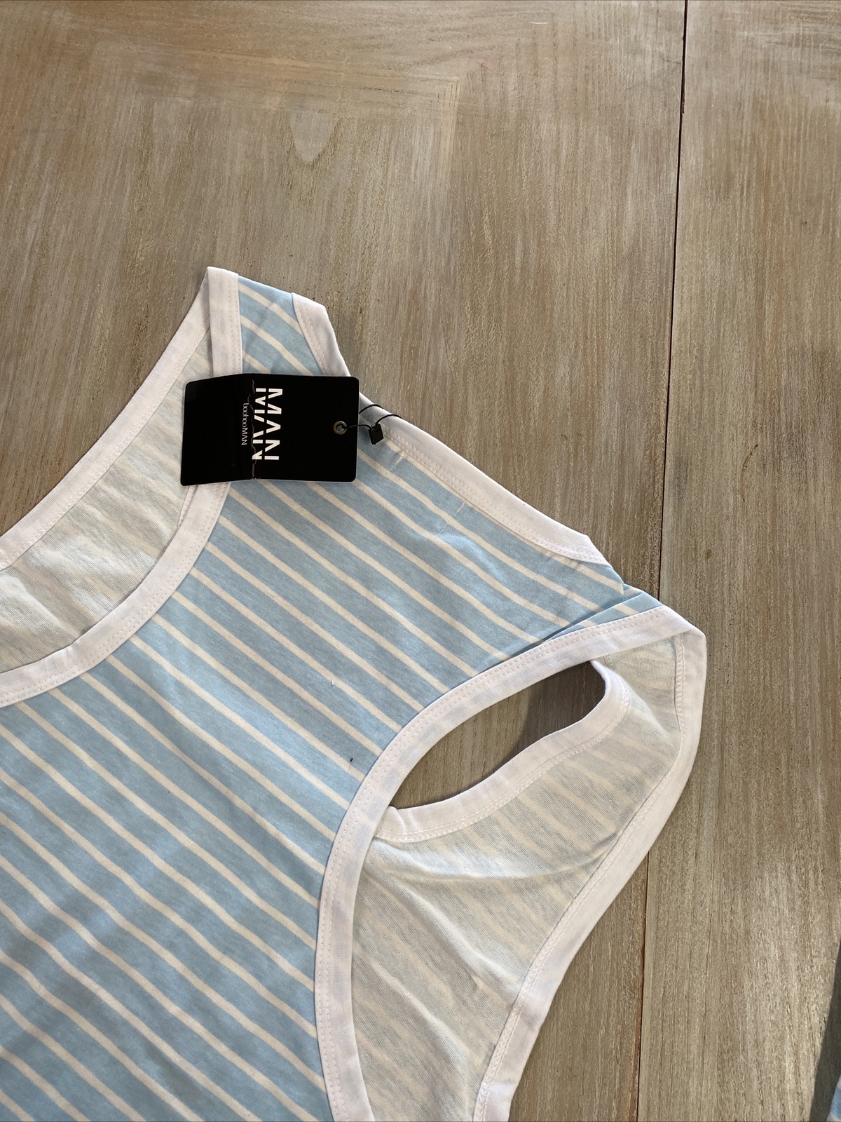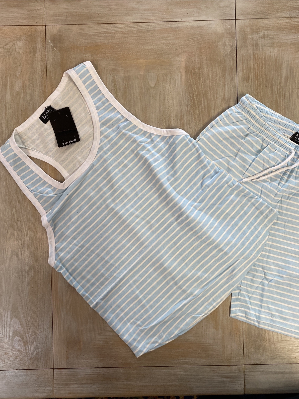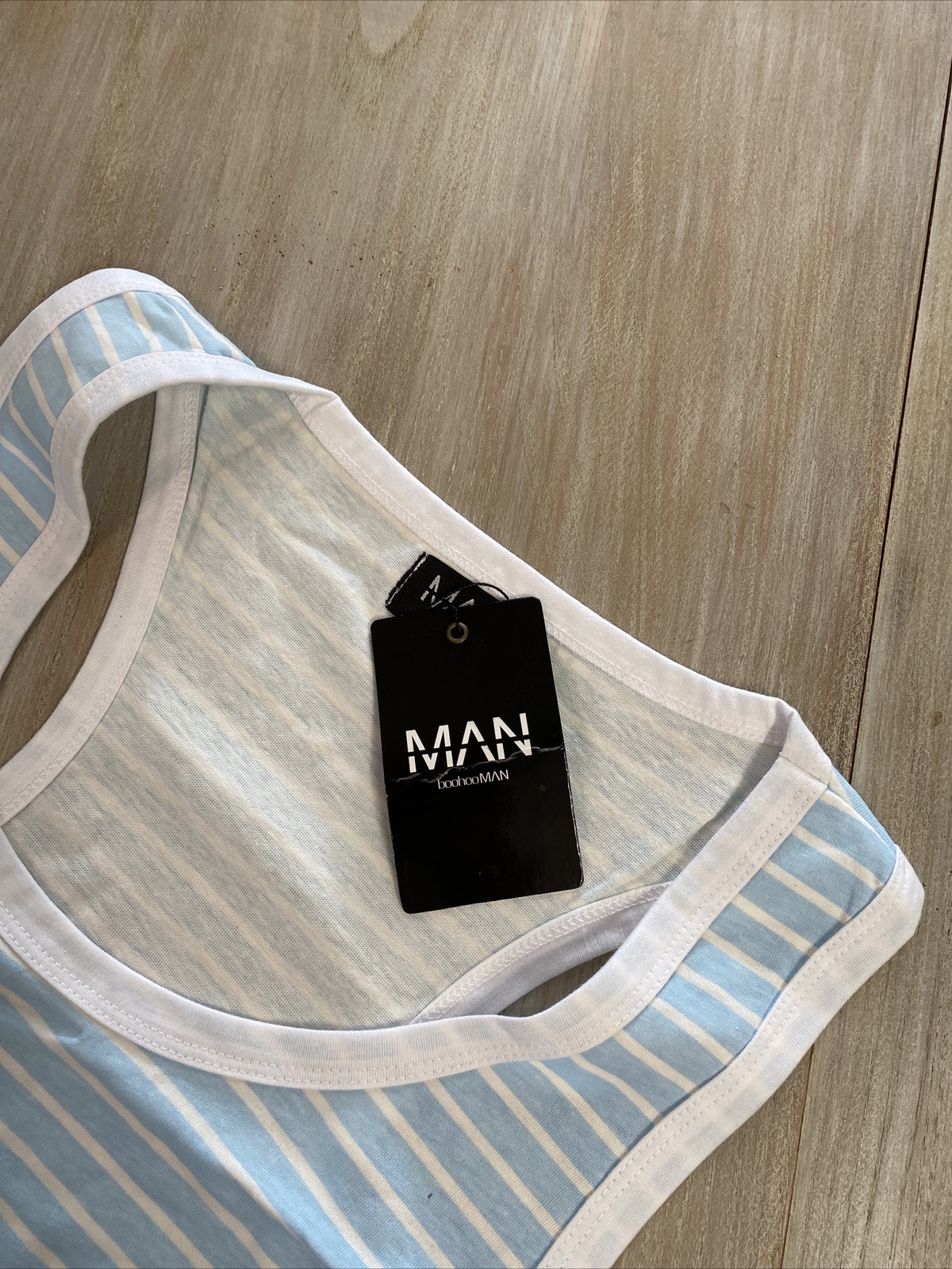 Mens Vest Shorts Set Medium Blue White Boohoo Man Set RRP 35