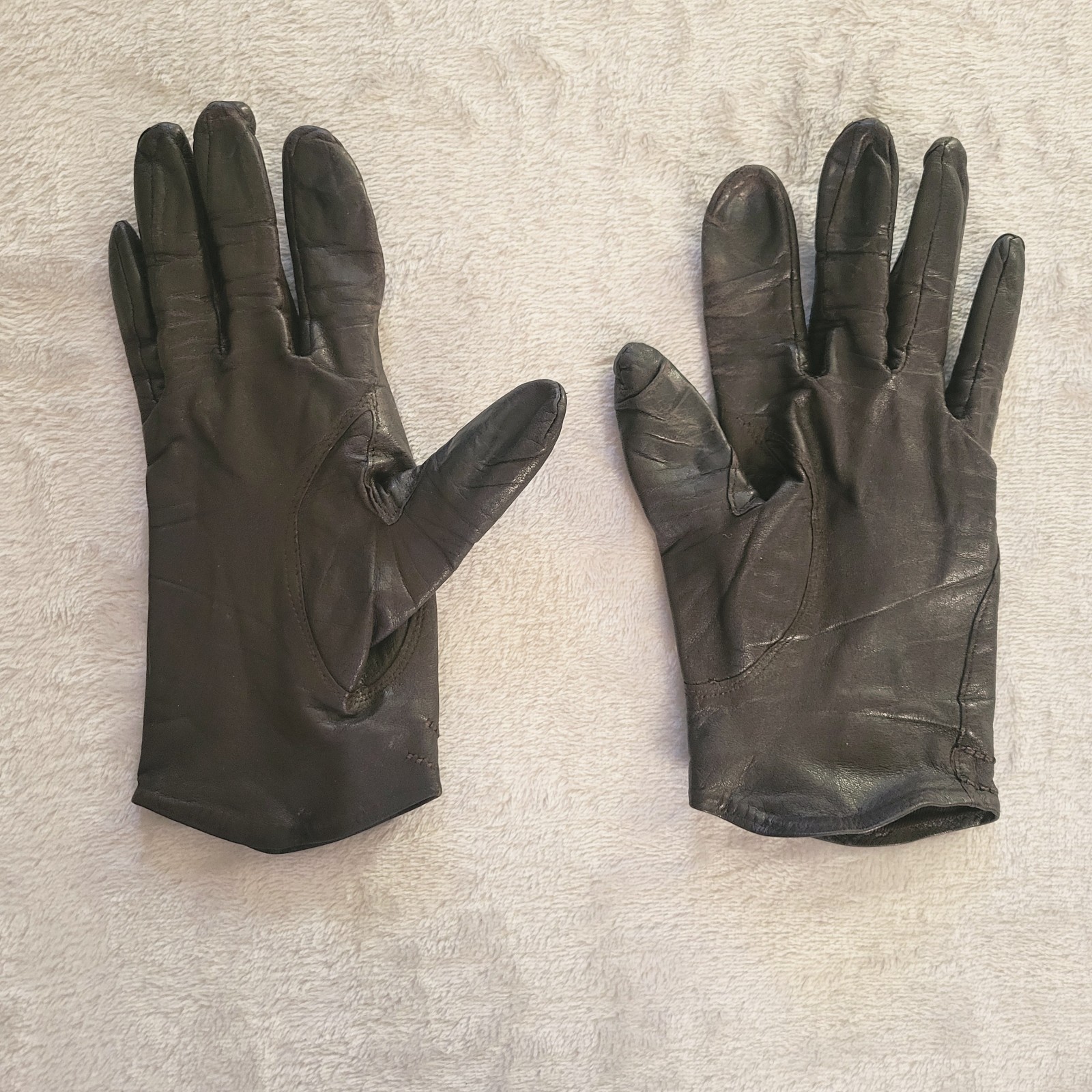как выглядит Vintage Womans/Girls Brown Leather Gloves Button Wrist Flaw Petite фото