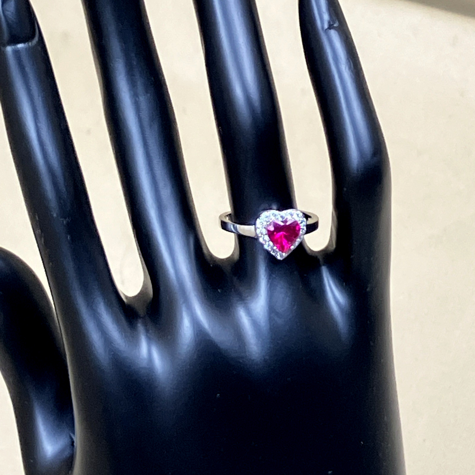 как выглядит Sterling Silver Halo Heart Ring w/ Round Heart Cut Colored CZ Stones Sz 5 NWOT фото