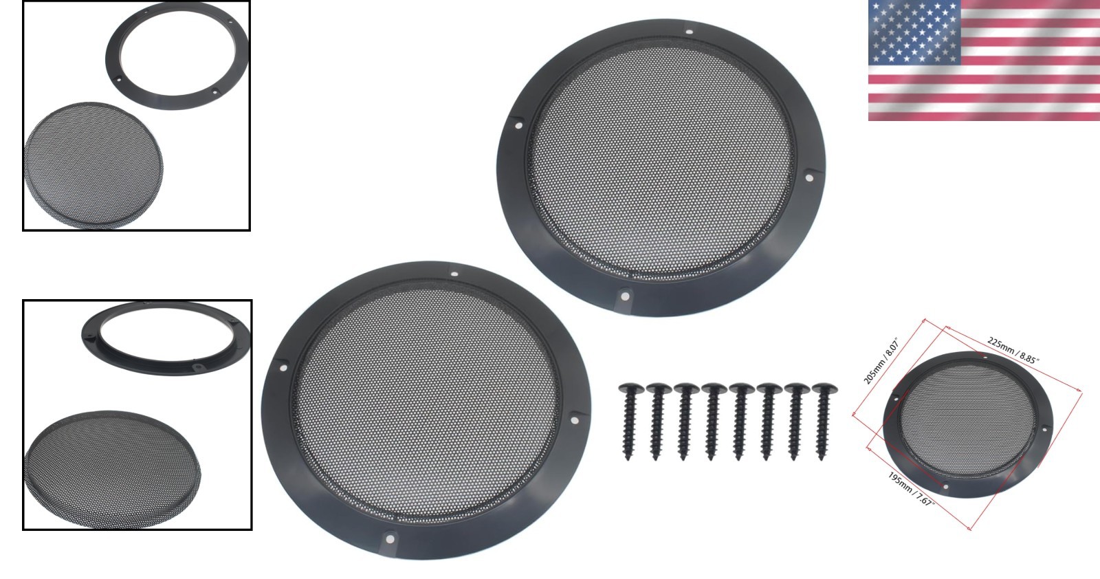 Sleek Black 8-Inch Mesh Speaker Grill Covers - 2 Pcs for Subwoofer Protection