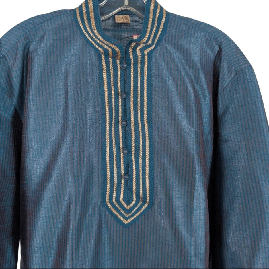 Men s 42 105 CM Peacock Blue Silk Kurta TOP ONLY Pajama Indian Wedding Tunic