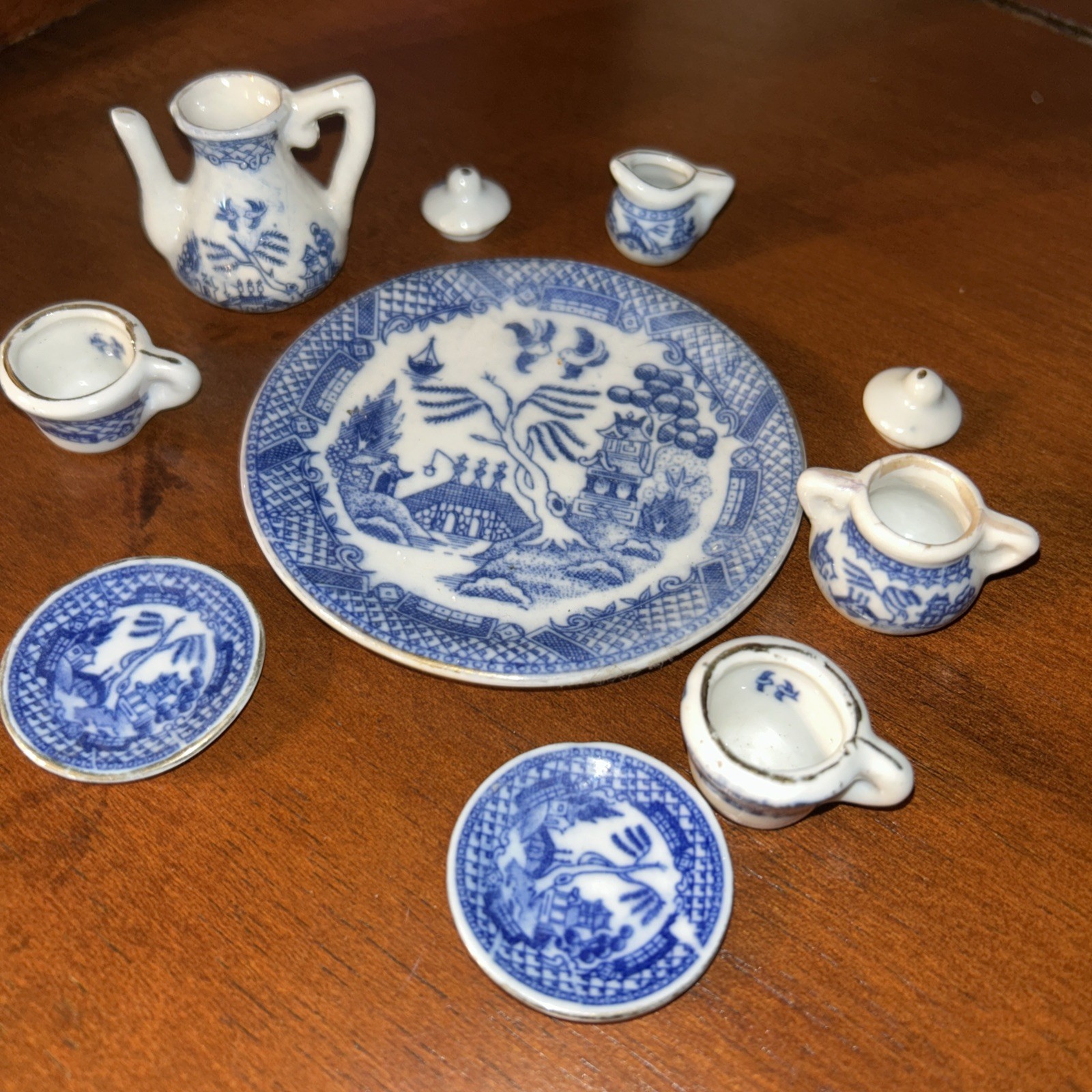 как выглядит Blue Willow Mini Tea Set For Doll House фото