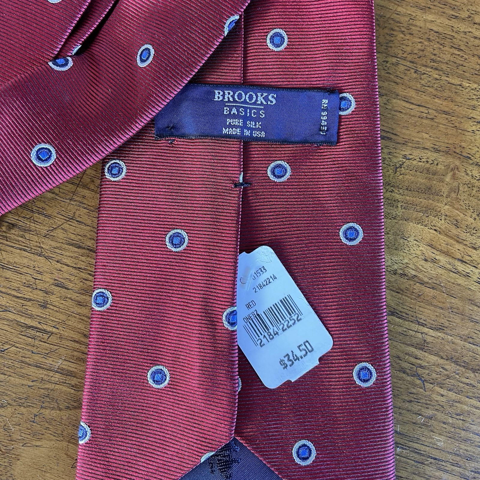 Brooks Brothers Basics Red 100 Silk Tie with Circles, Made in USA New With Tag