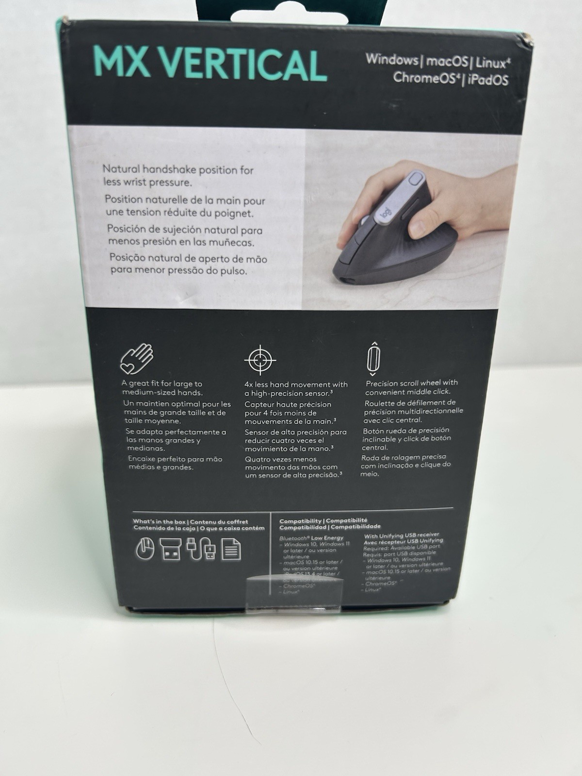 Logitech MX Vertical Ergonomic Wireless Mouse Black 57 4000 DPI Bluetooth USB -