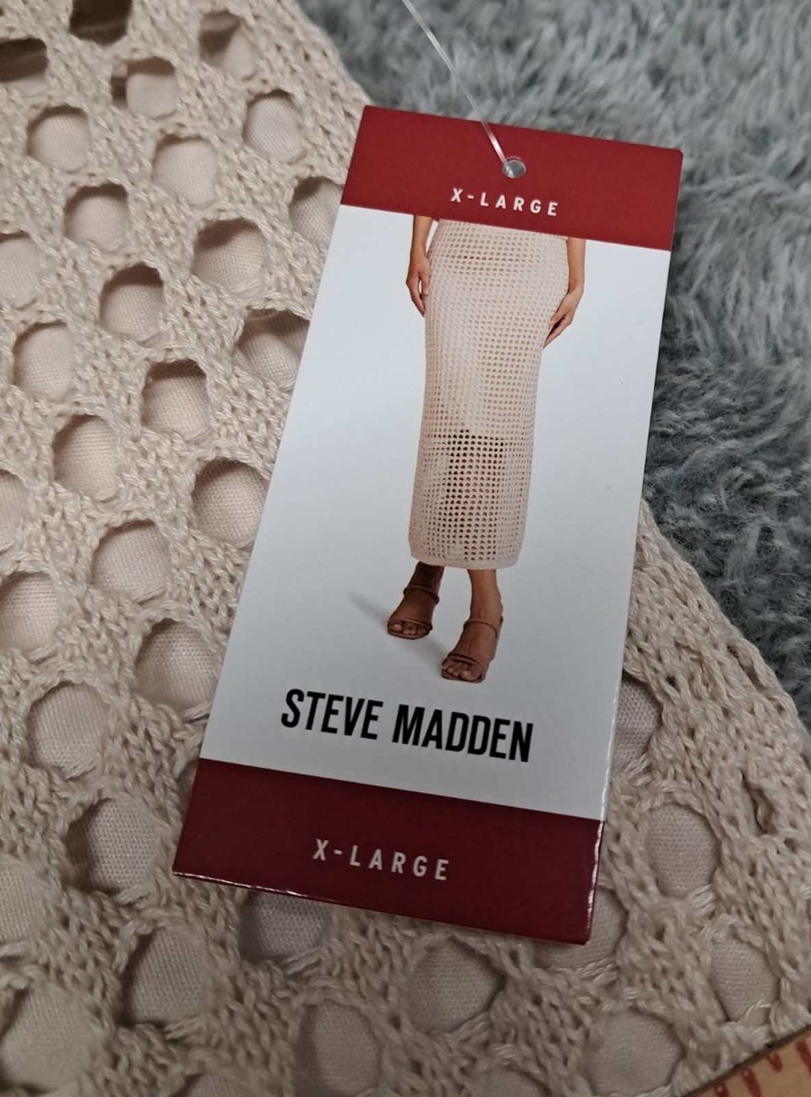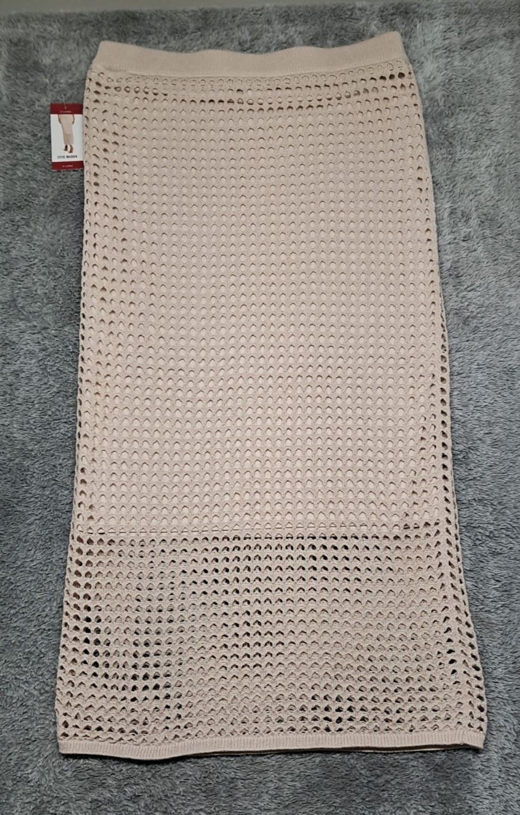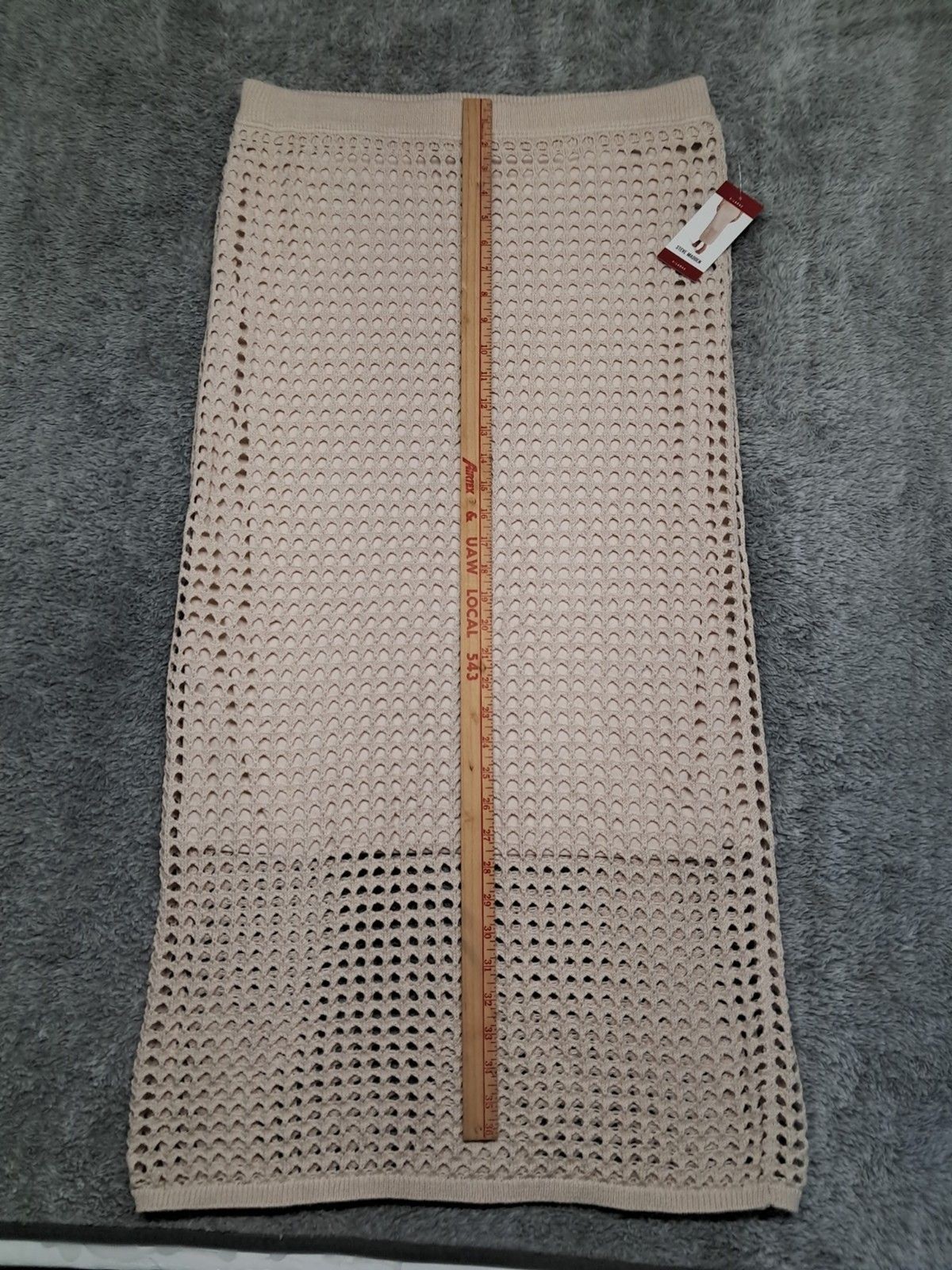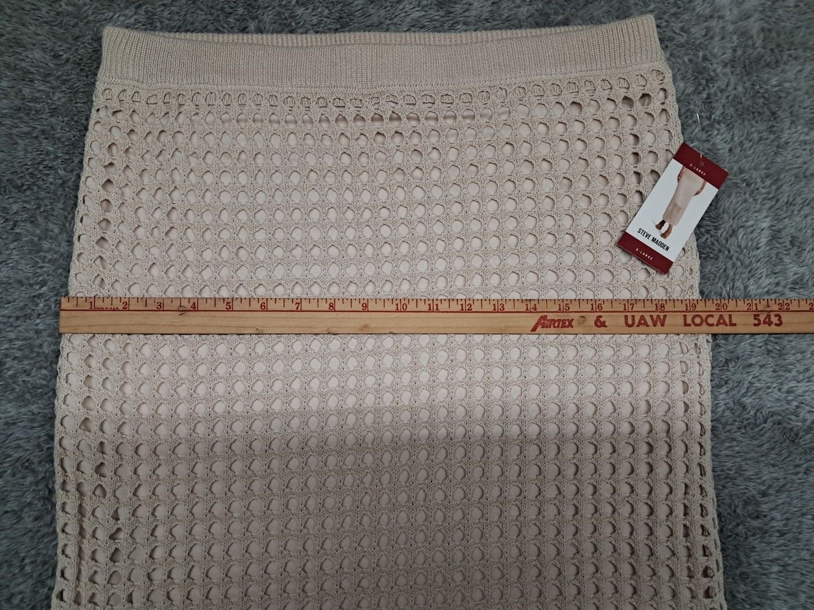 как выглядит New Steve Madden Long Skirt Womens Sz XL Crochet Pull-On Lined Straight Beige фото