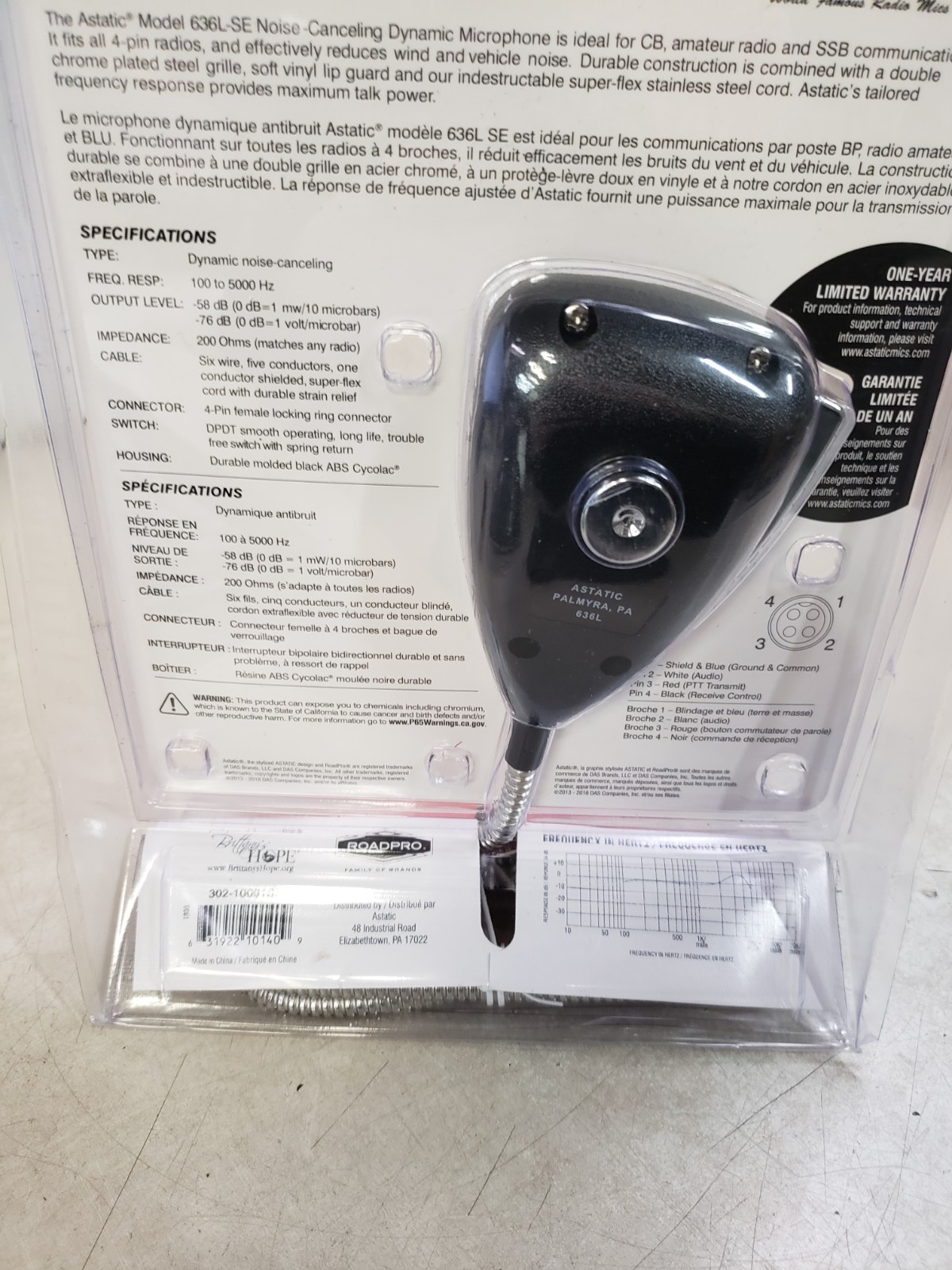 ASTATIC 636L-SE Silver Edition CB Ham Radio Microphone 4-pin mic Metal Cord