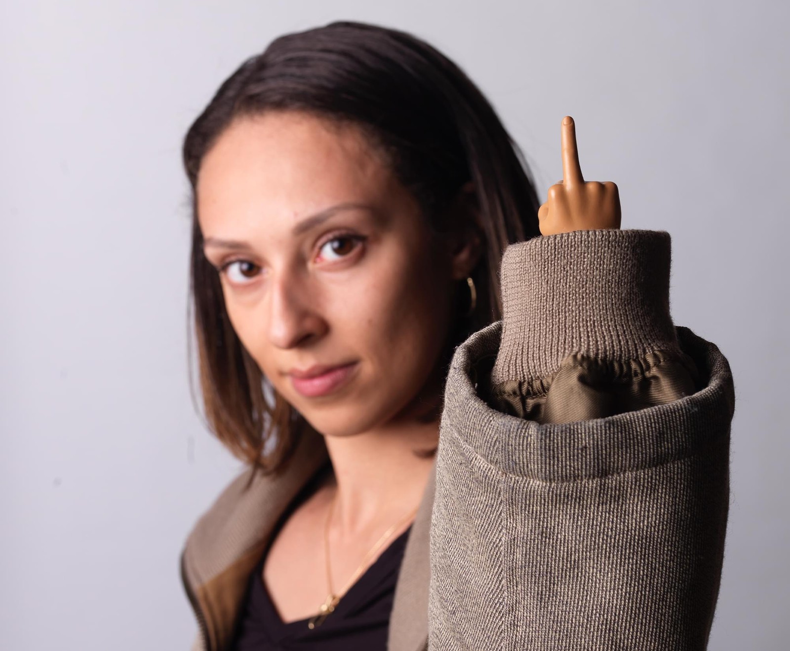 Tiny Hands 4.5-Inch Novelty Toy Left and Right Middle Finger Hand Deep Brown