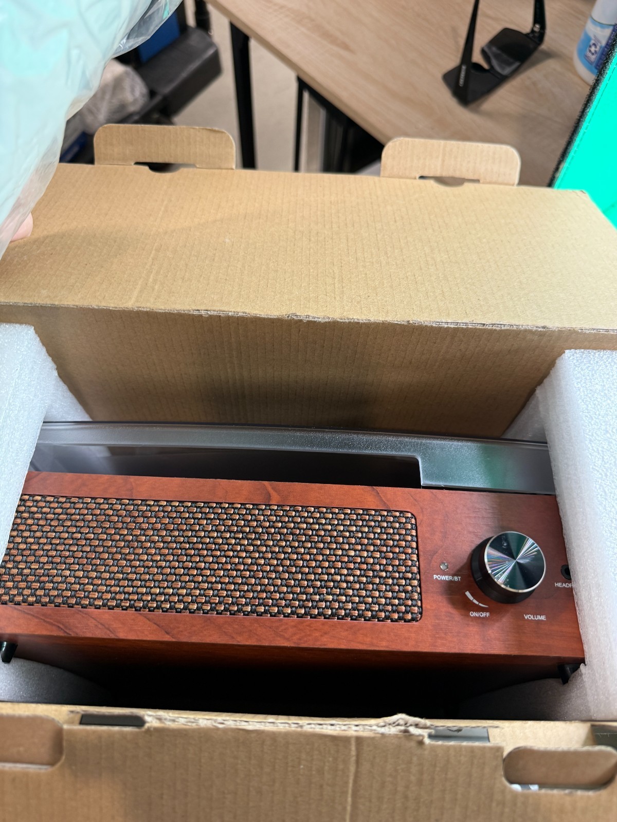как выглядит Vinyl Record Player Turntable W/ Built-In Bluetooth Receiver 2 Stereo Speakers фото