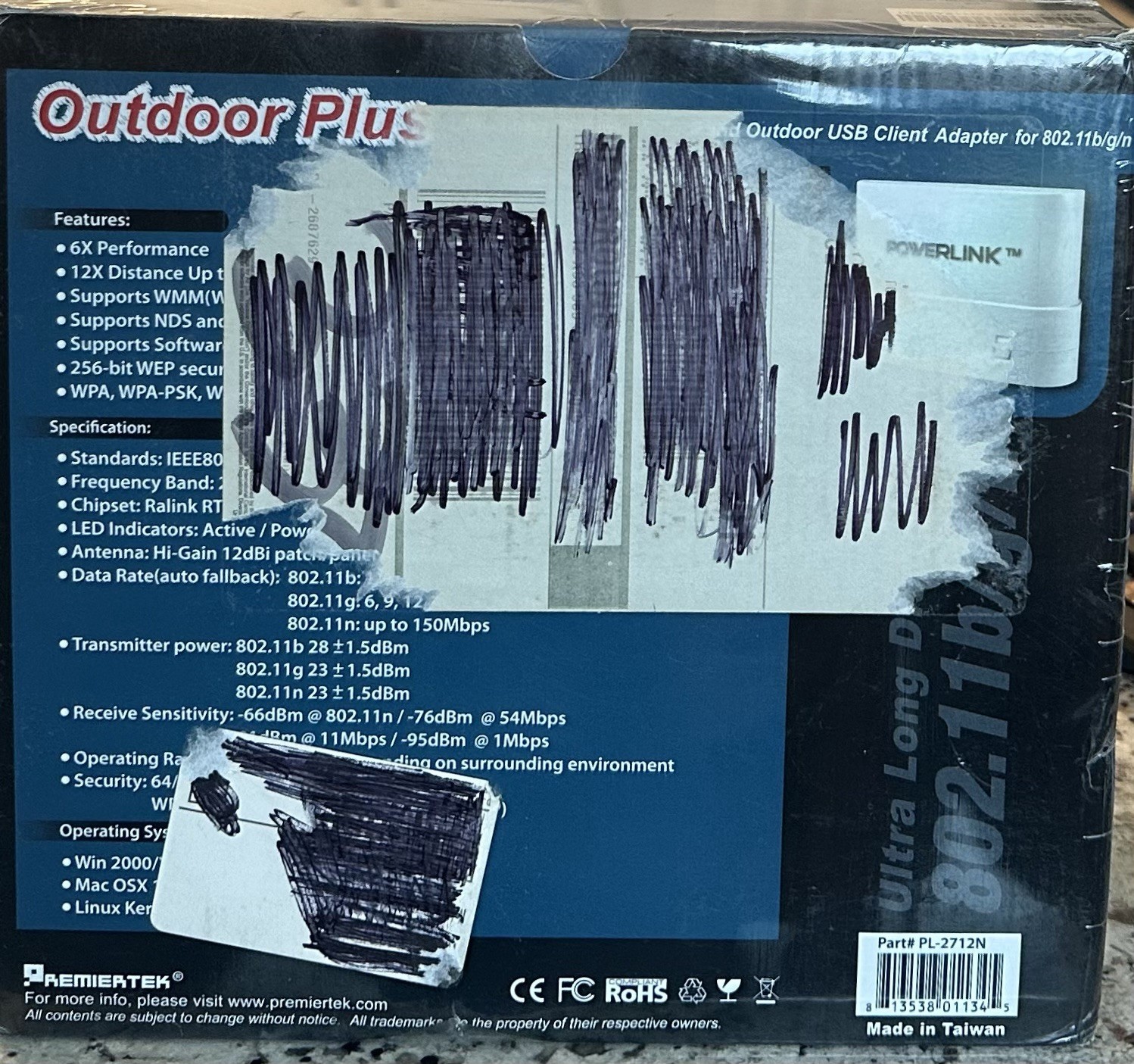 Powerlink Outdoor Plus 2000mW Long Range WiFi Adapter 12dBi Antenna USB NEW