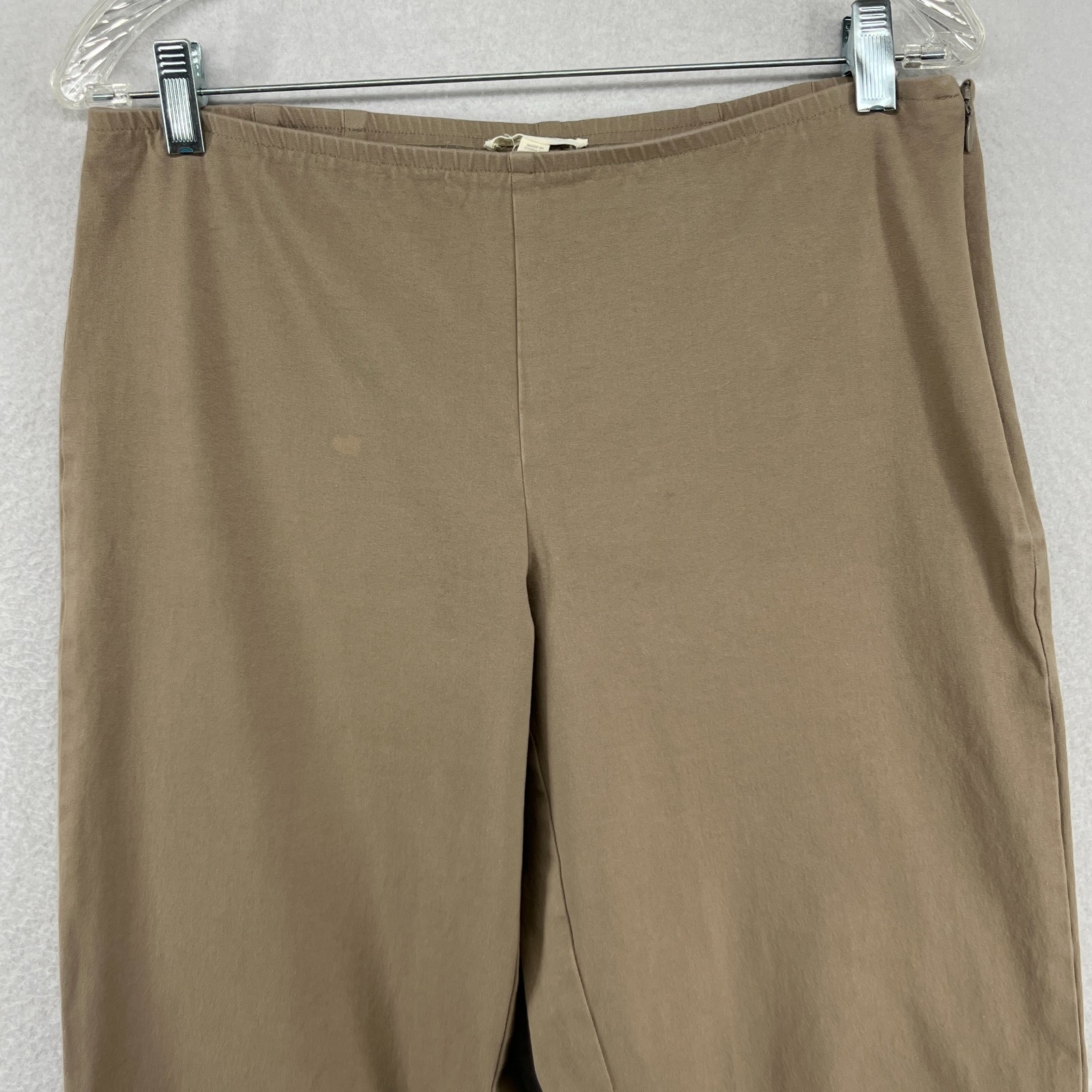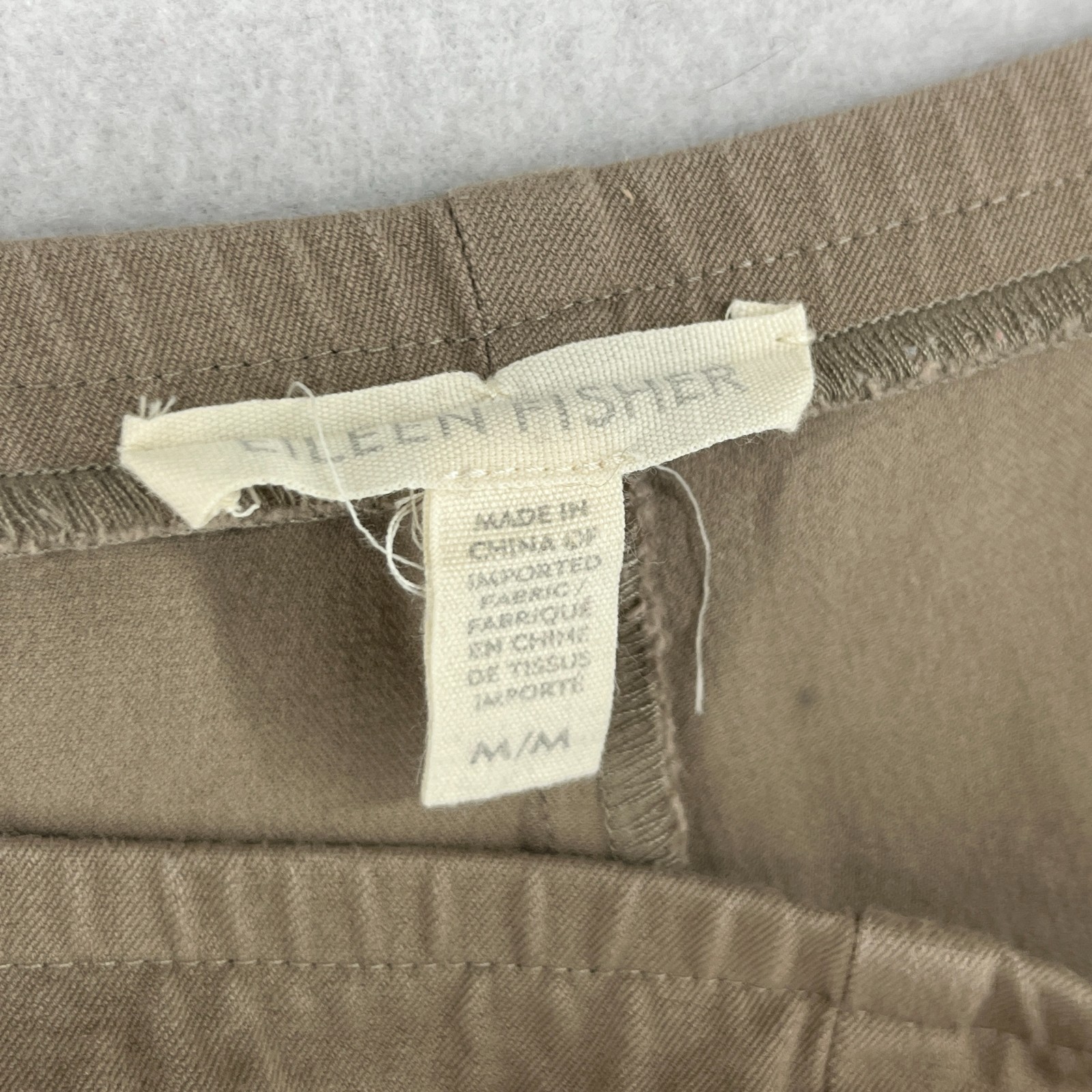 EILEEN FISHER Pants M Stretch Organic Cotton Twill Tapered Ankle Side Zip Brown