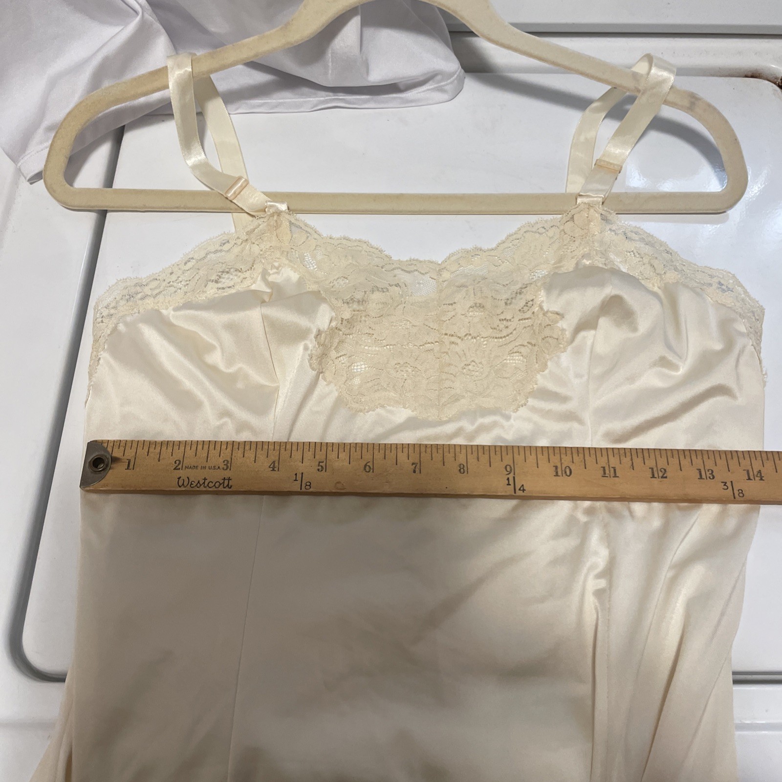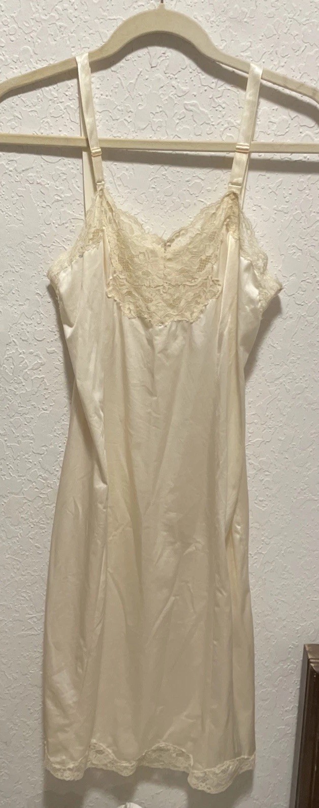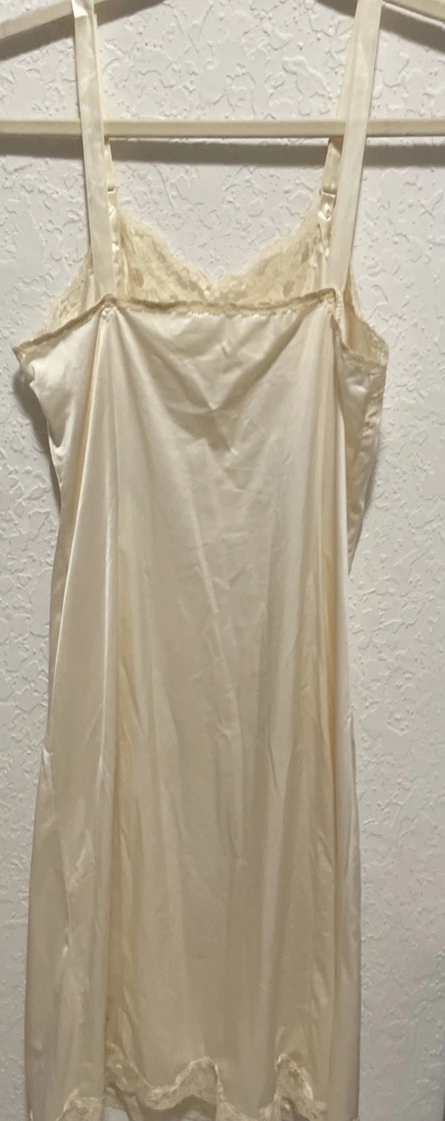как выглядит Wonder Maid 1960s Vintage Full Slip w/ Lace Trim Hem Cream Movie Star Size 34 A фото