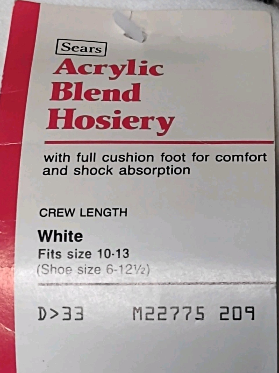 Vintage Sears Socks Men's 10-13 Orlon Acrylic Stretch Nylon White Crew USA NOS