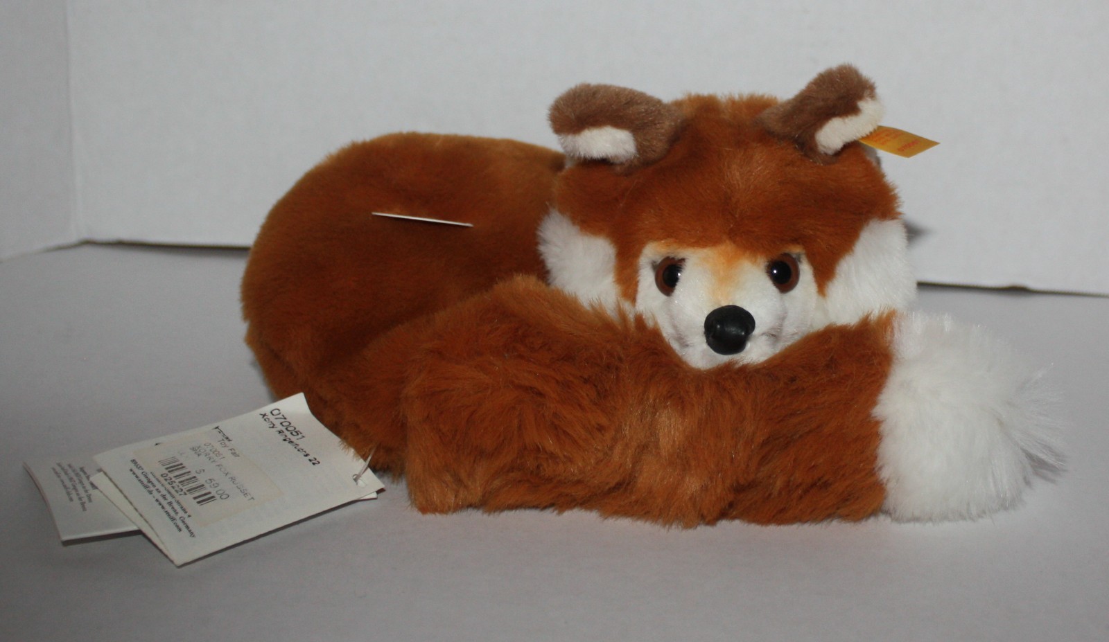 как выглядит Vintage STEIFF Xorry Fox Curled Lying Plush Stuffed Animal Toy 070051 фото
