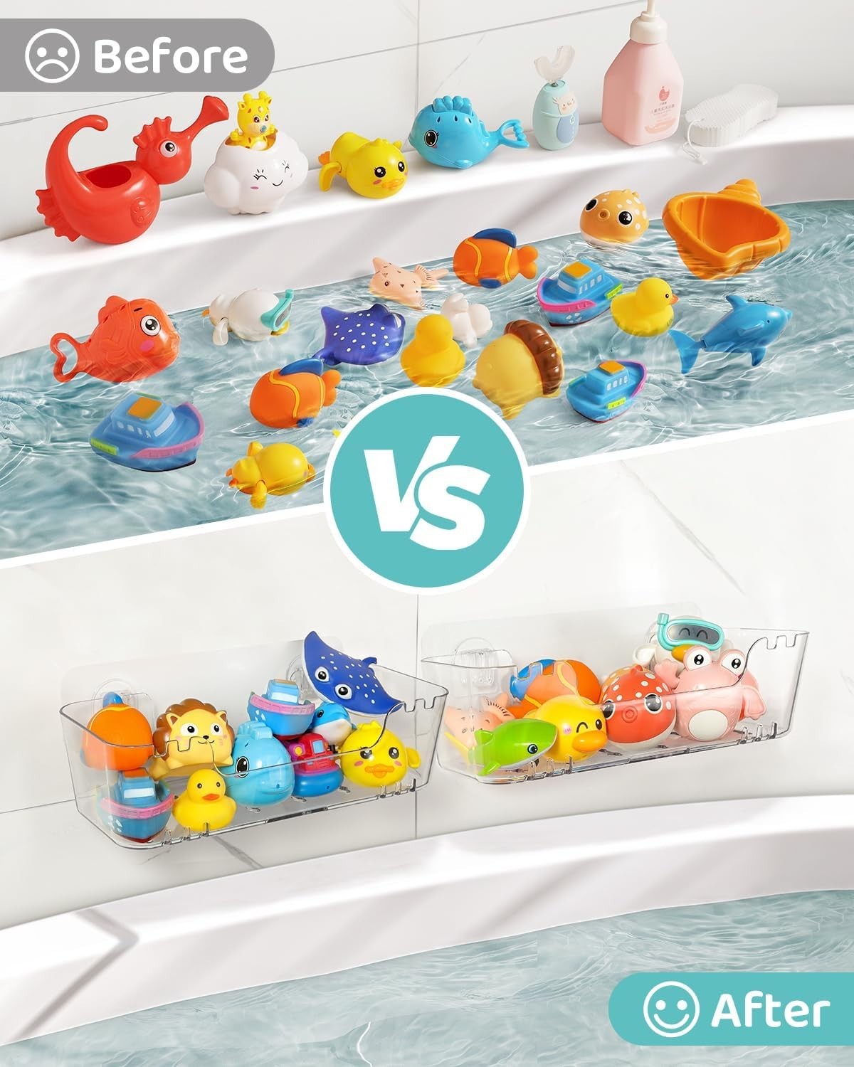 как выглядит Bath Toy Storage Organizer 2 Pack, Transparent Bath Toy Holder with Drain Holes фото