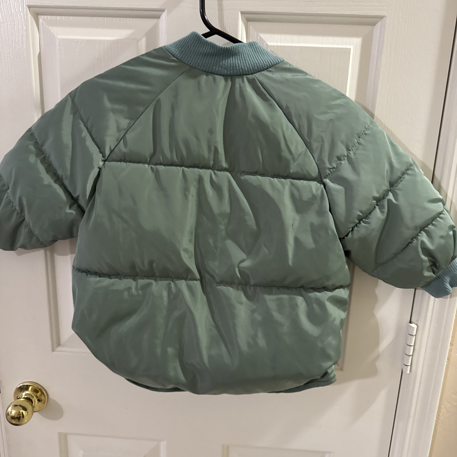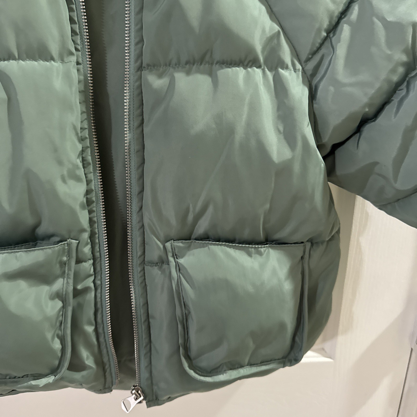 как выглядит Zara Kids Green Puffer Jacket Ribbed Collar/Large Pockets Size 4-5 Years фото