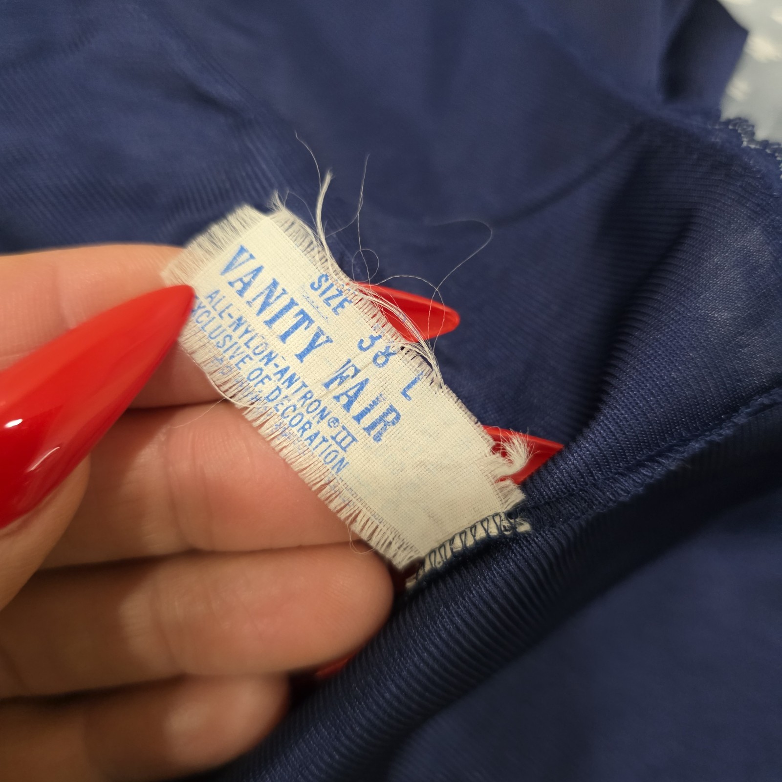 как выглядит Vanity Fair Slip Dress Lace Trim Full Slip Navy Blue Size 38 Large USA фото