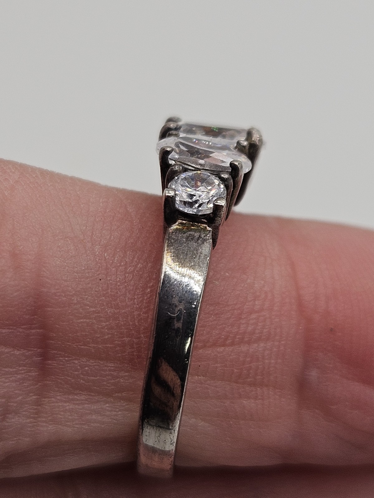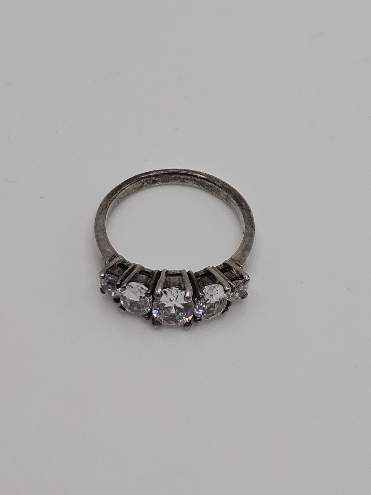 Vintage Sterling Silver Clear CZ 5 Stone Band Ring Size 7
