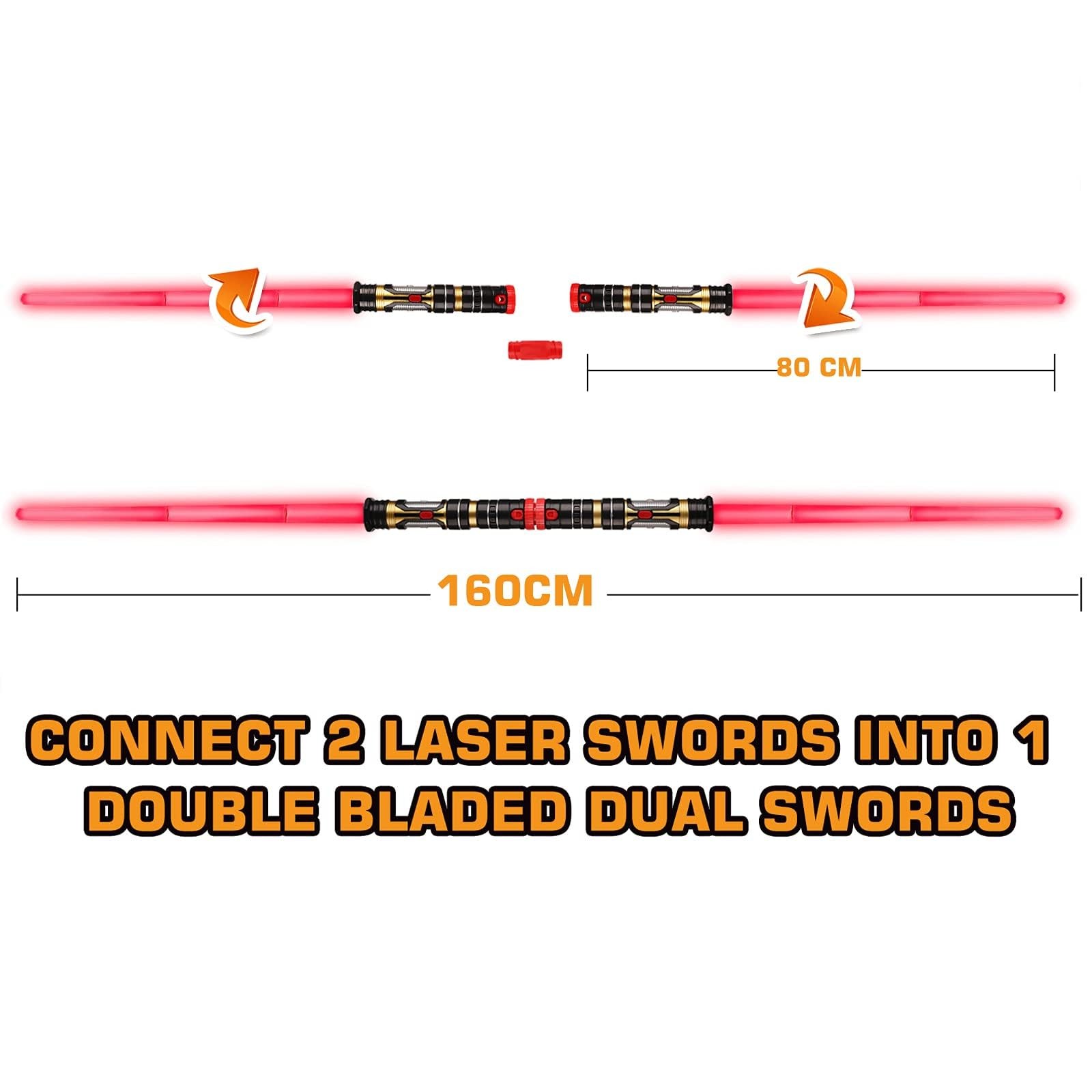 2-Pack Light Up Saber Swords w/FX Sounds Retractable Blade - Purple/Blue/Red
