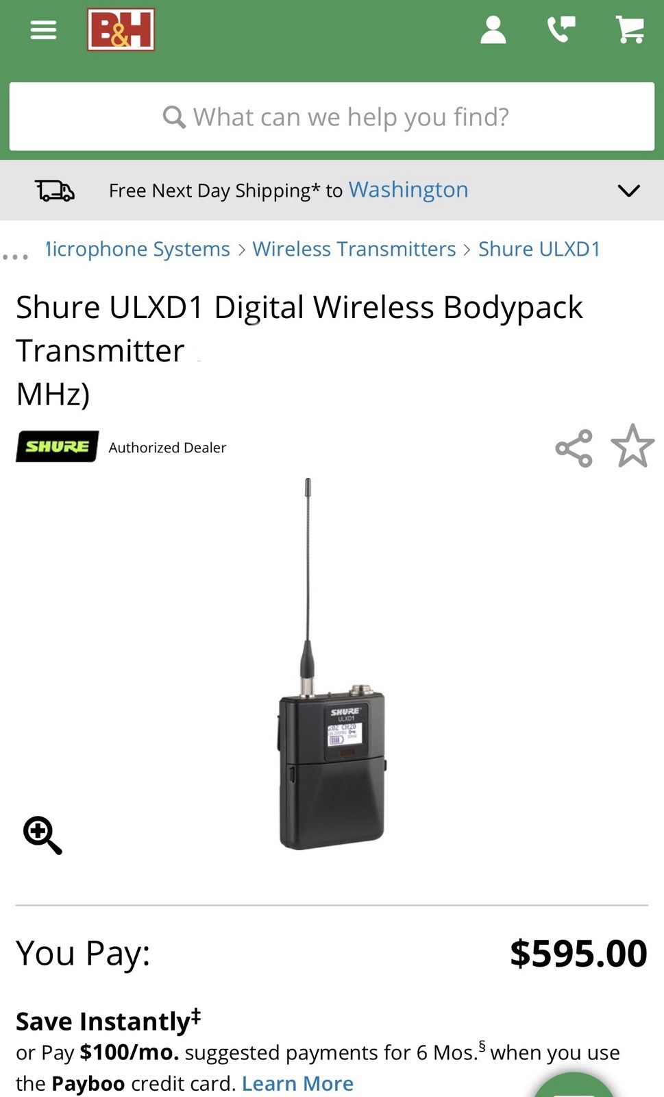 Shure ULXD1 Bodypack Transmitter - G50 Digital Wireless System