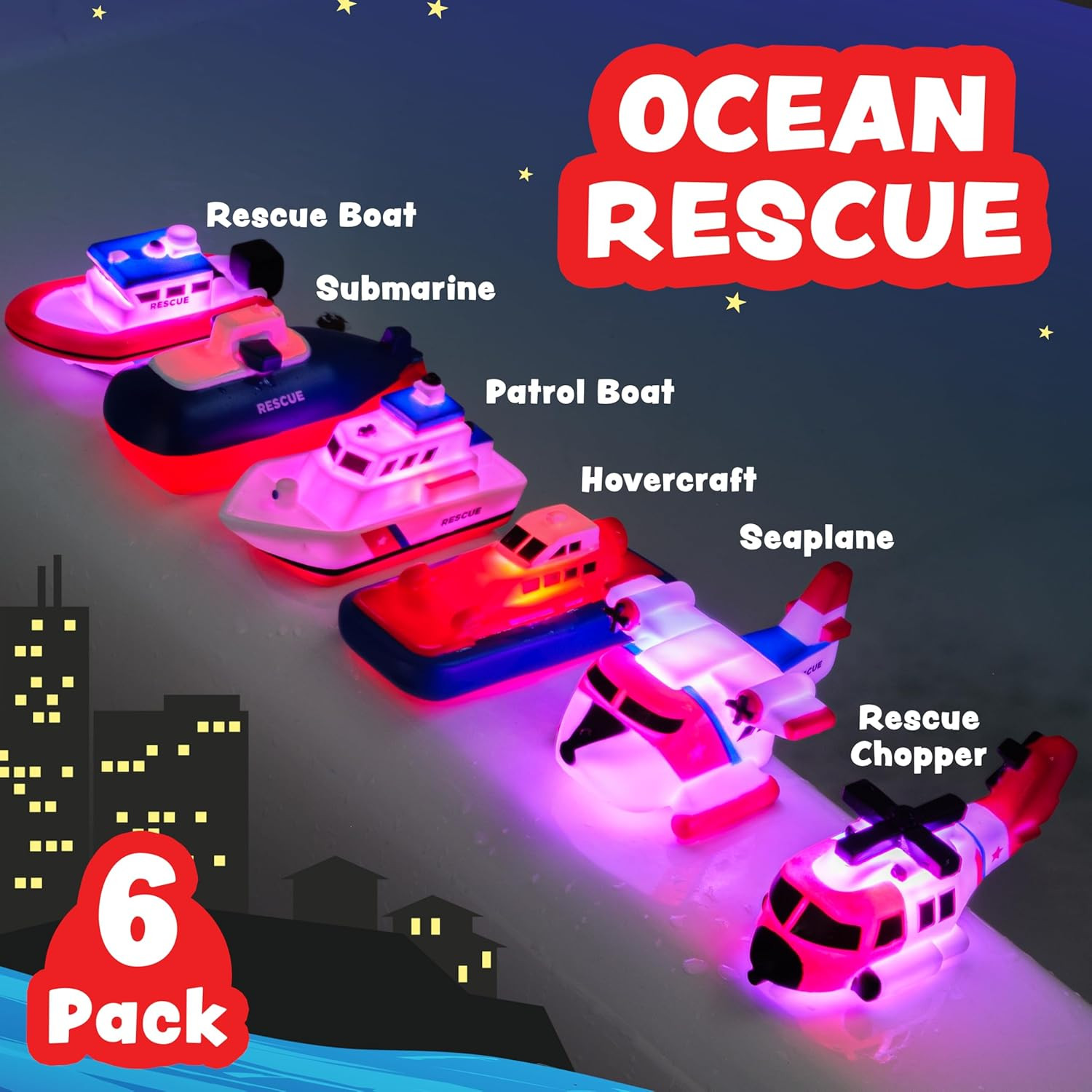 Ocean Rescue Vehicles Light up Bath Toys, 6 Pack Water-Activated Light up T