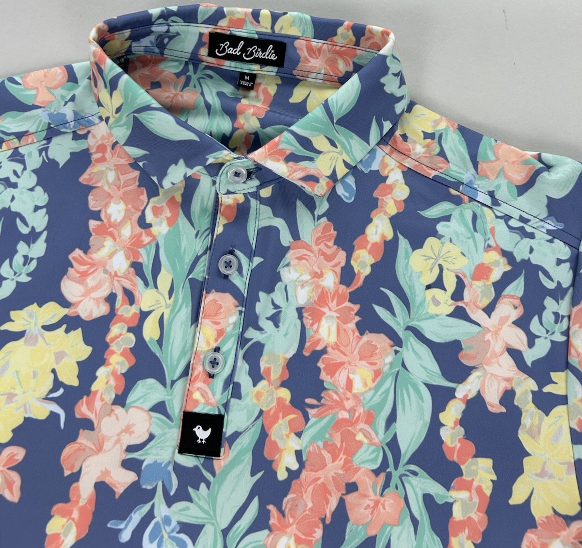 NEW Bad Birdie Core Golf Polo Shirt Floral Lei'd Short Sleeve Mens Size M