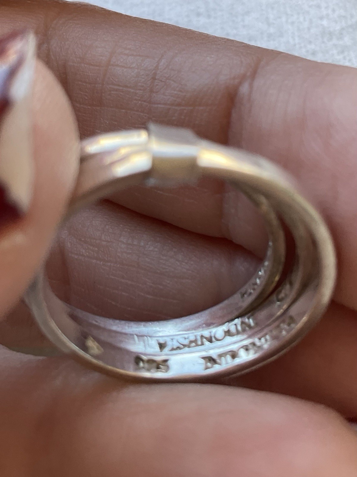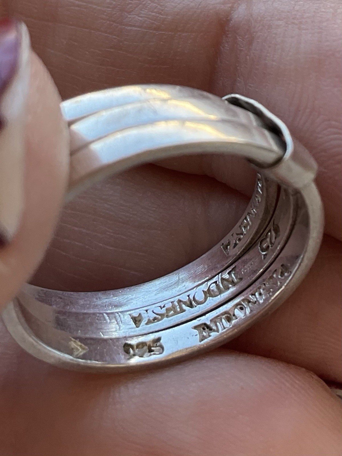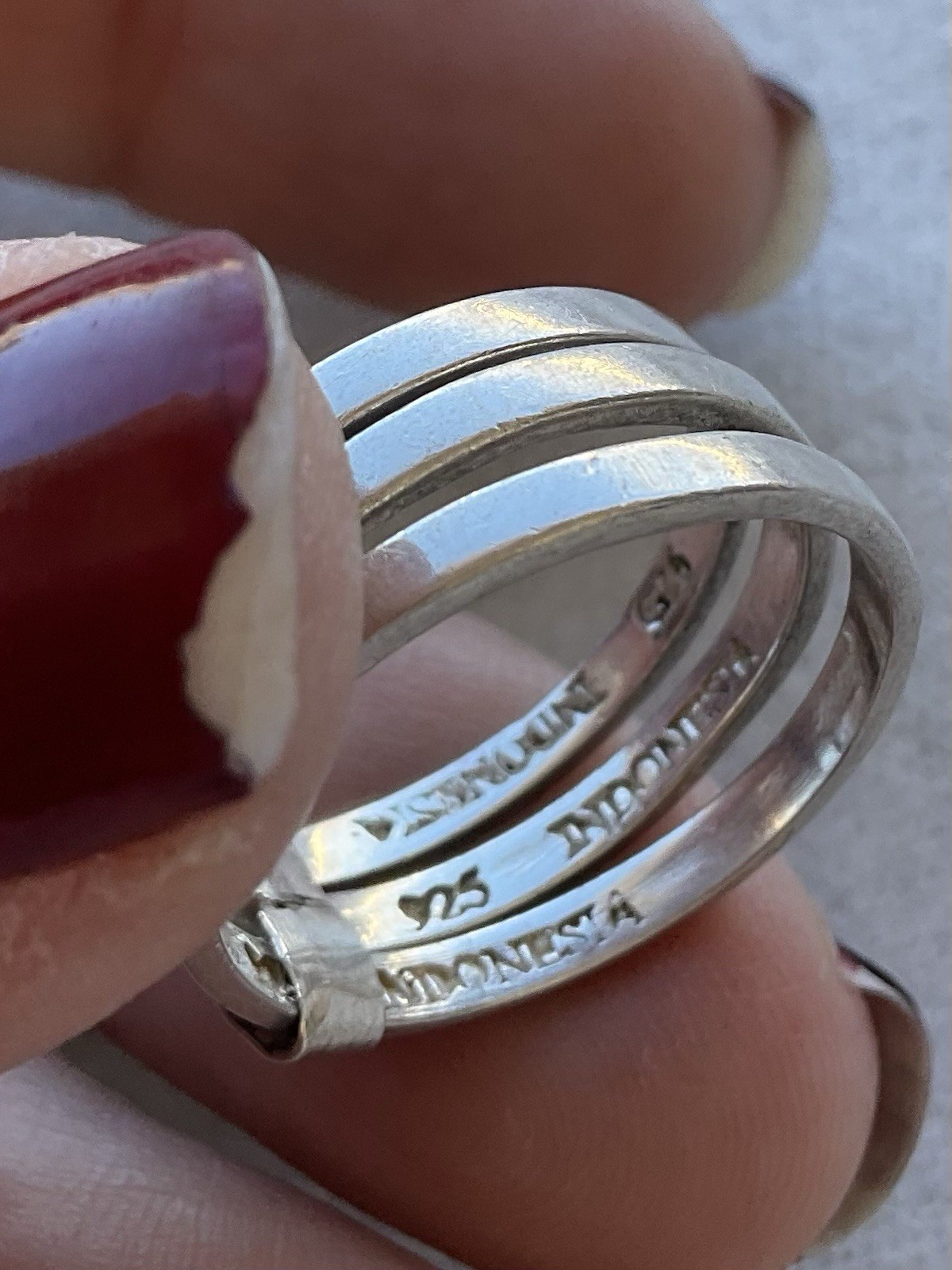 как выглядит 925 Indonesia Sterling Silver Stacked Connected Ring Band Set Size 8 Vintage фото