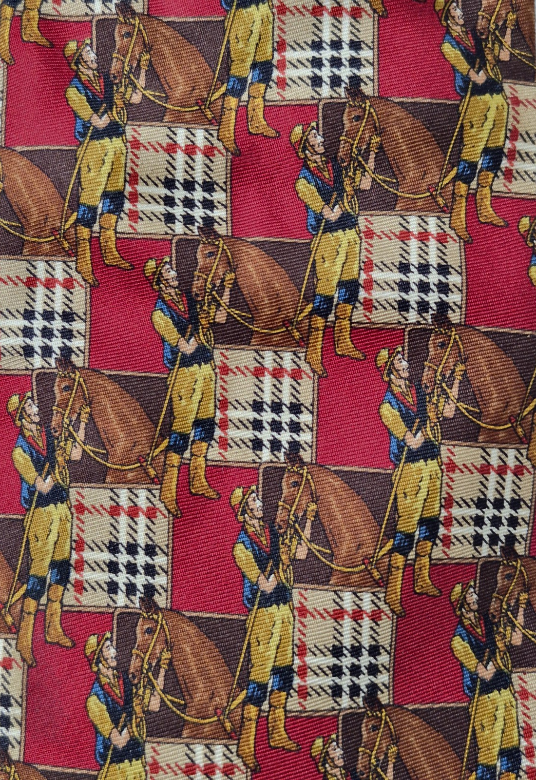 Vintage Burberry 1990s Classic Silk Tie Nova Check Horse Equestrian