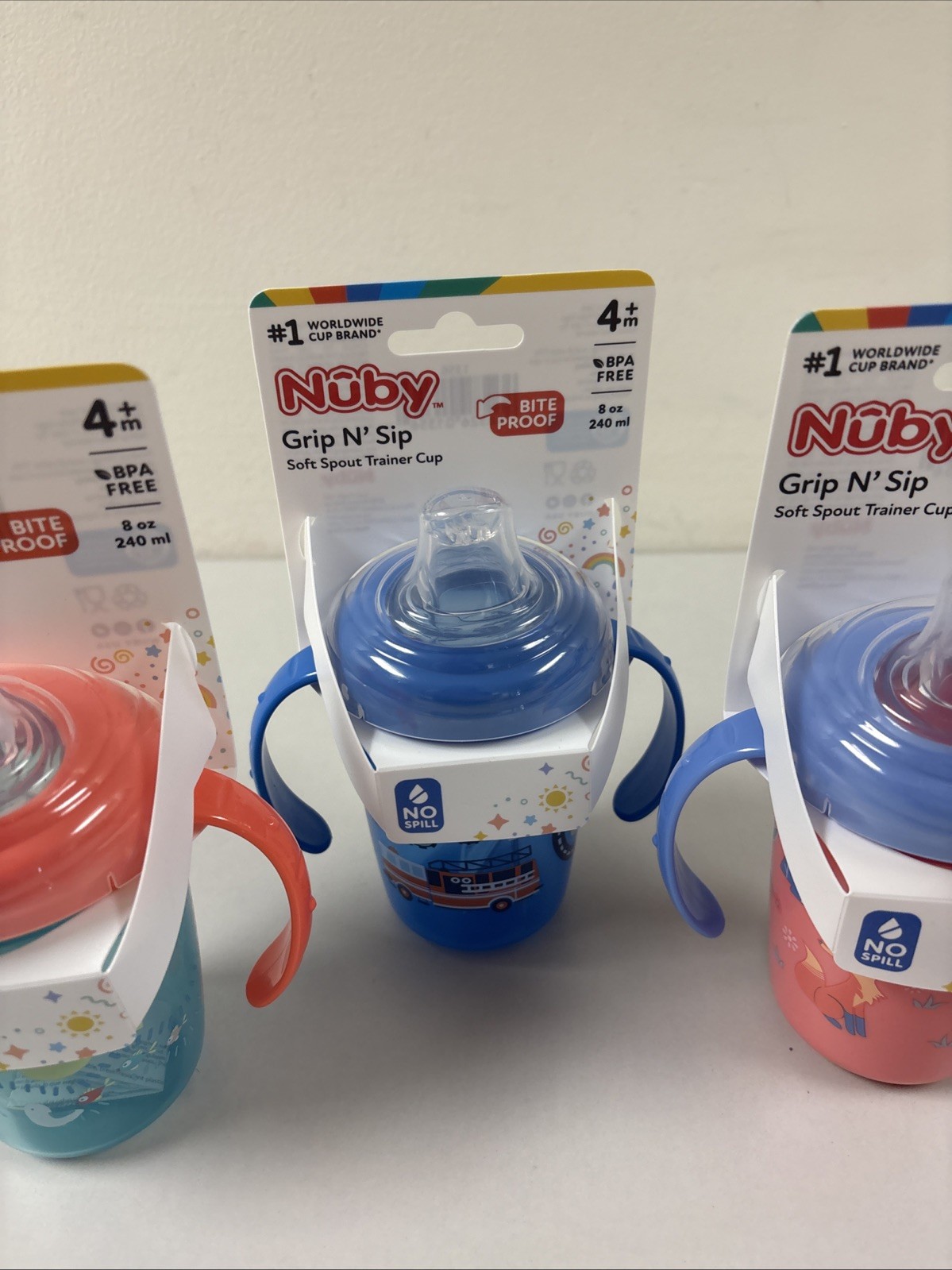 как выглядит Nuby Grip N Sip Soft Spout Trainer Baby Cup, No Spill Cup 4m New 3 Pack G111 фото