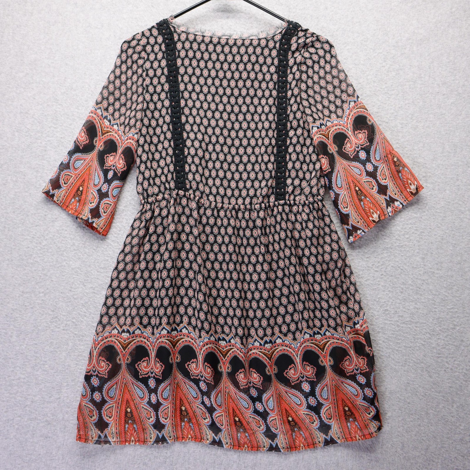 как выглядит Miss Me Girls Dress XL Black Pink Paisley Boho 3/4 Bell Sleeve Tunic Boho Hippie фото