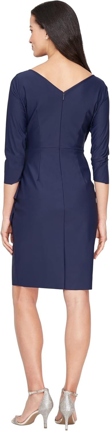 как выглядит Alex Evenings Womens Embellished Ruched Cocktail Sheath Dress Size 12 Navy NEW фото