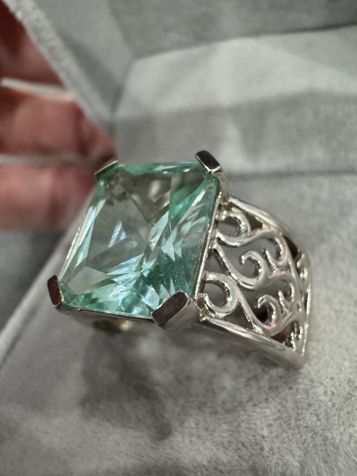 как выглядит BLUE SPINEL -statement 10x12mm Sz 8 Ring Sterling Silver фото