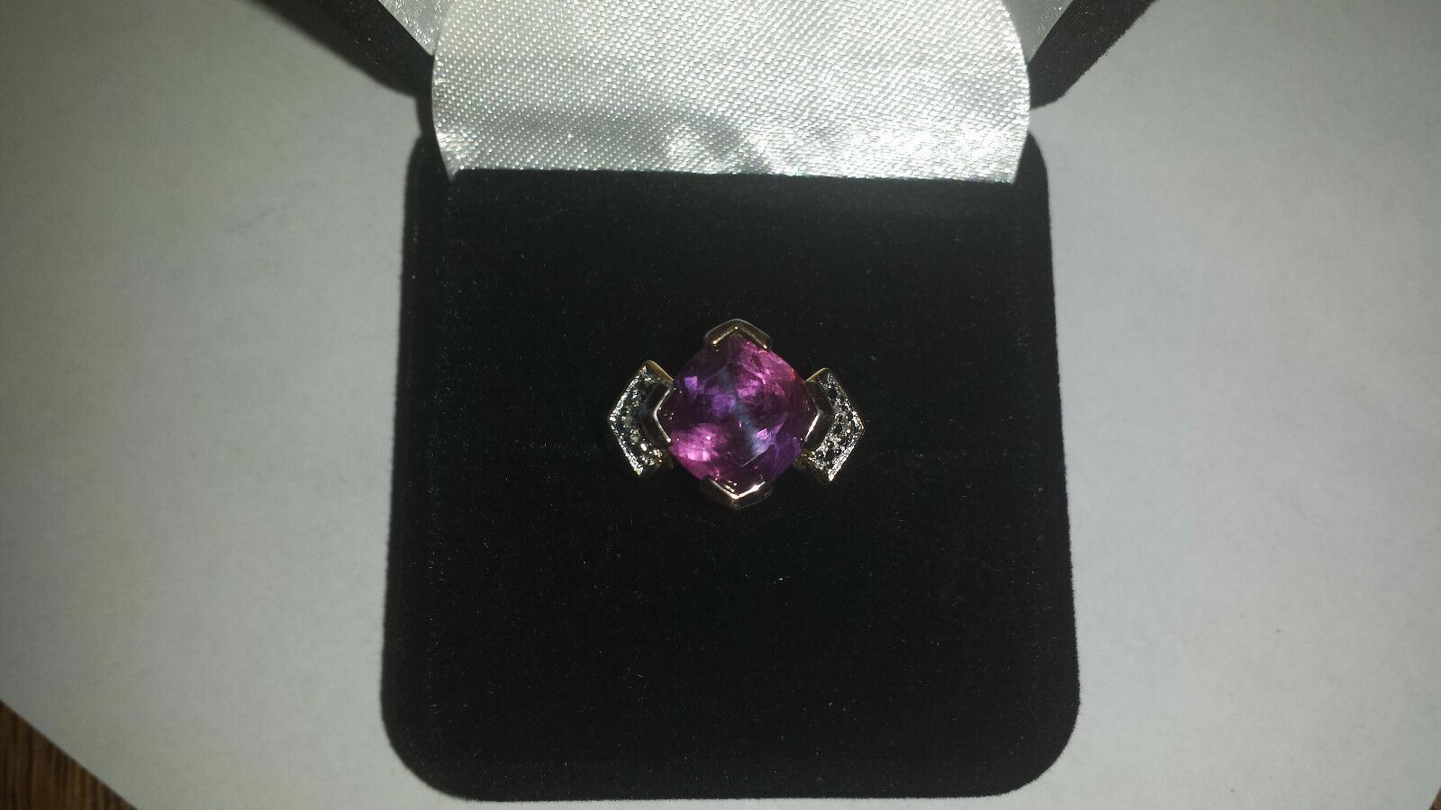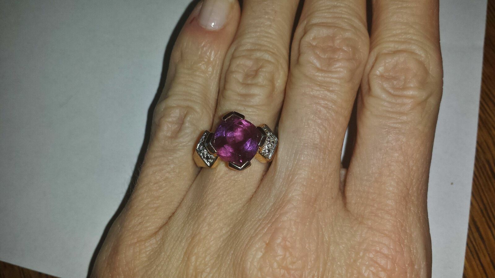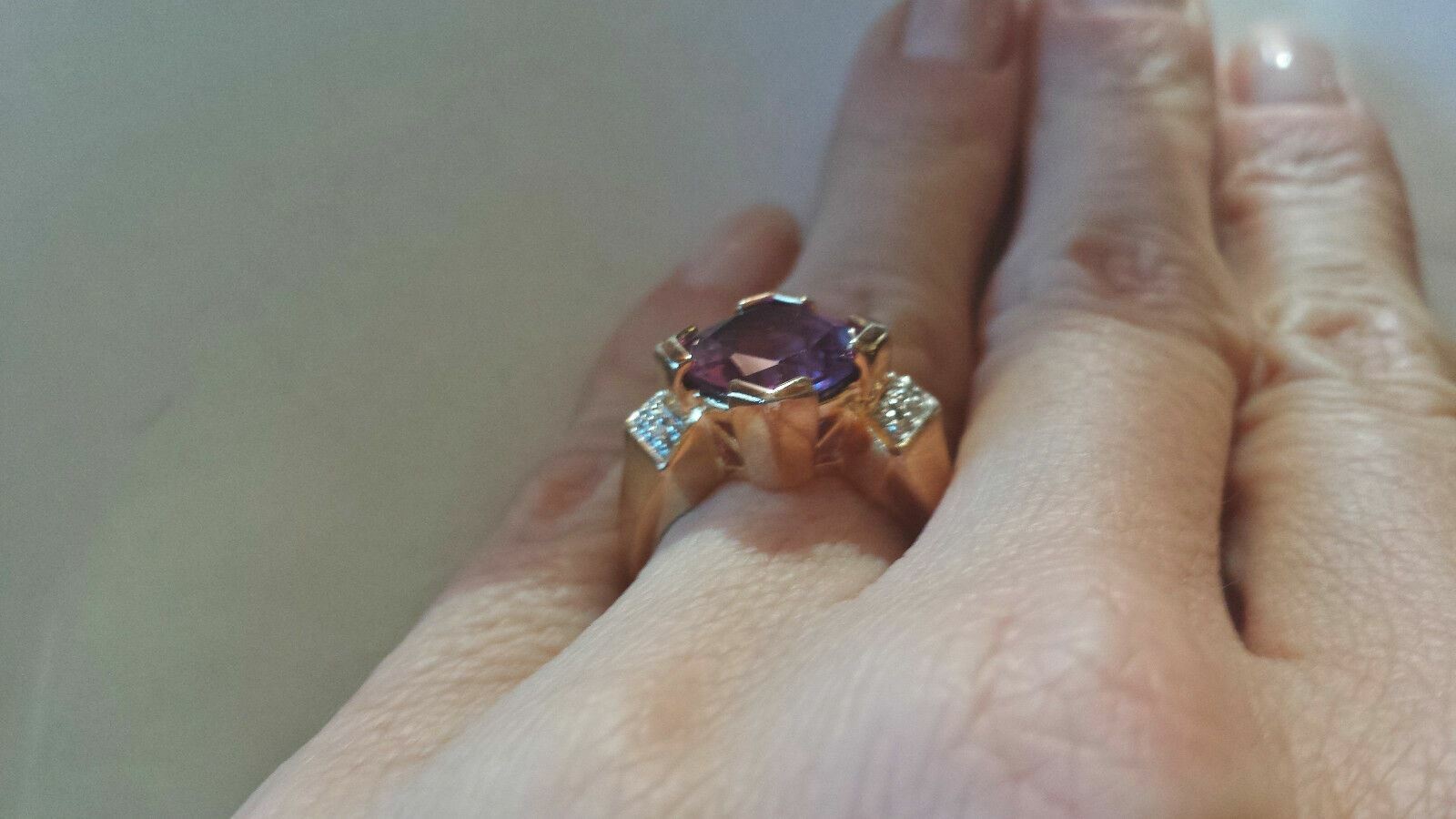 как выглядит PURPLE AMETHYST RING IN GOLD PLATED 925 STERLING SILVER sz 6 GORGEOUS фото