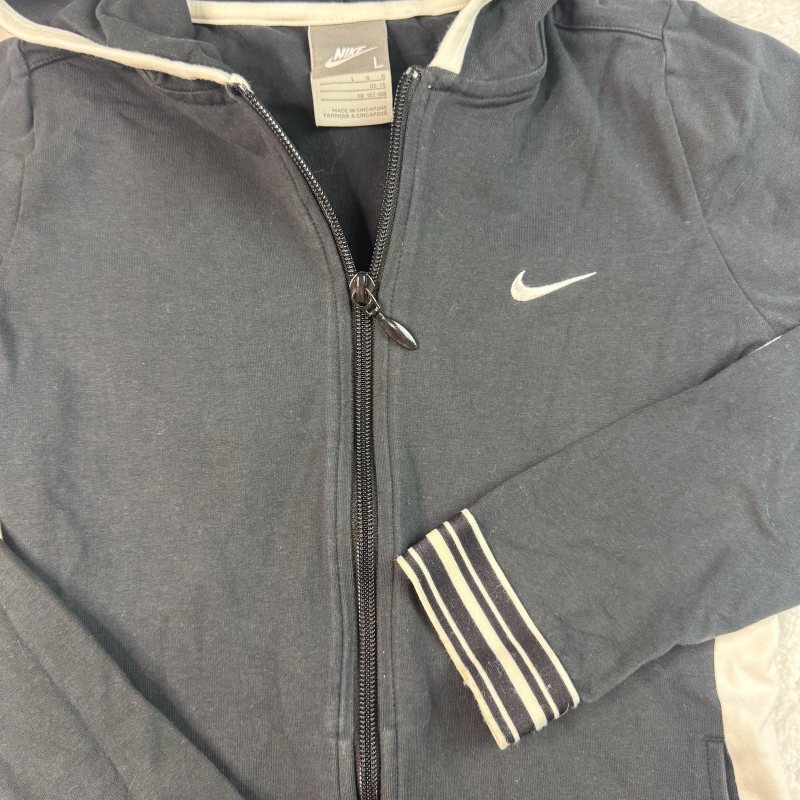Nike Youth Full Zip Hooded Jacket Black With White Stripe Accents Sz Large Kids