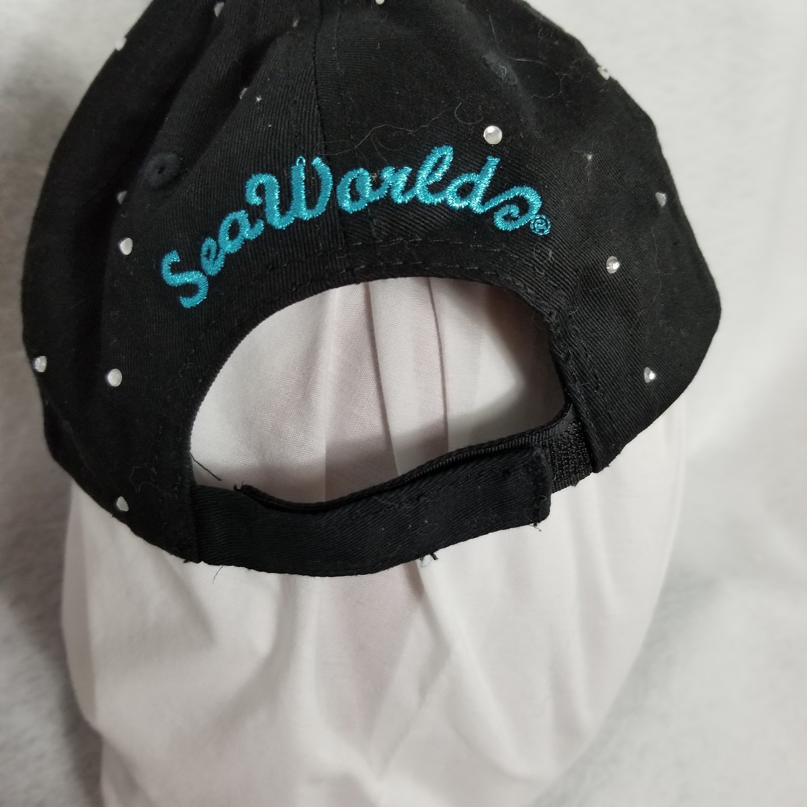 SEAWORLD Shamu Killer Whale Embroidered Logo Jeweled Hat Black