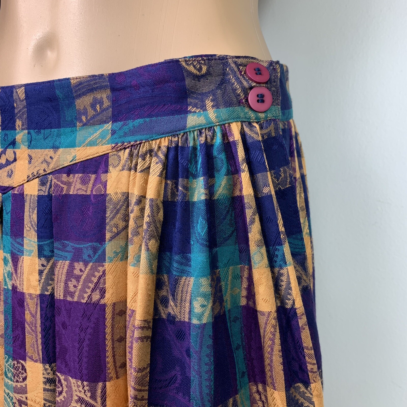 Vtg Christian Dior Pleated Skirt w/ Pockets Plaid Paisley Jacquard 31 Waist