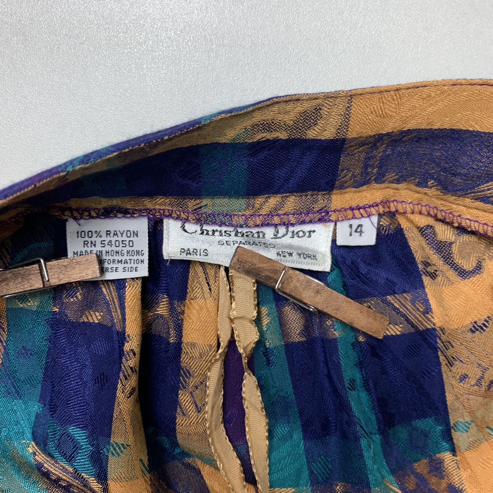 как выглядит Vtg Christian Dior Pleated Skirt w/ Pockets Plaid Paisley Jacquard 31 Waist фото
