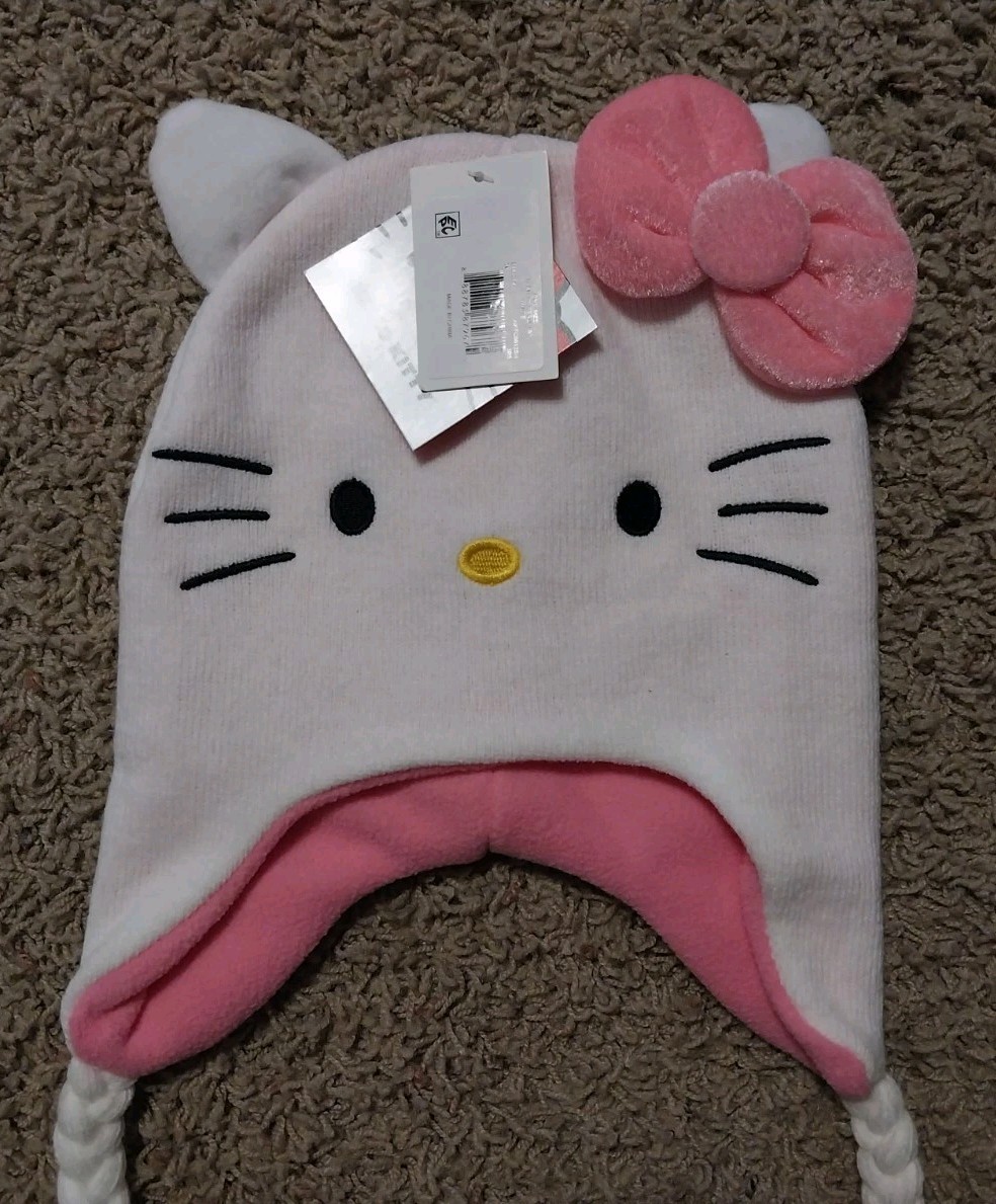 как выглядит Sanrio Hello Kitty Peruvian White With Pink Bow Beanie Hat One Size New Tassels фото