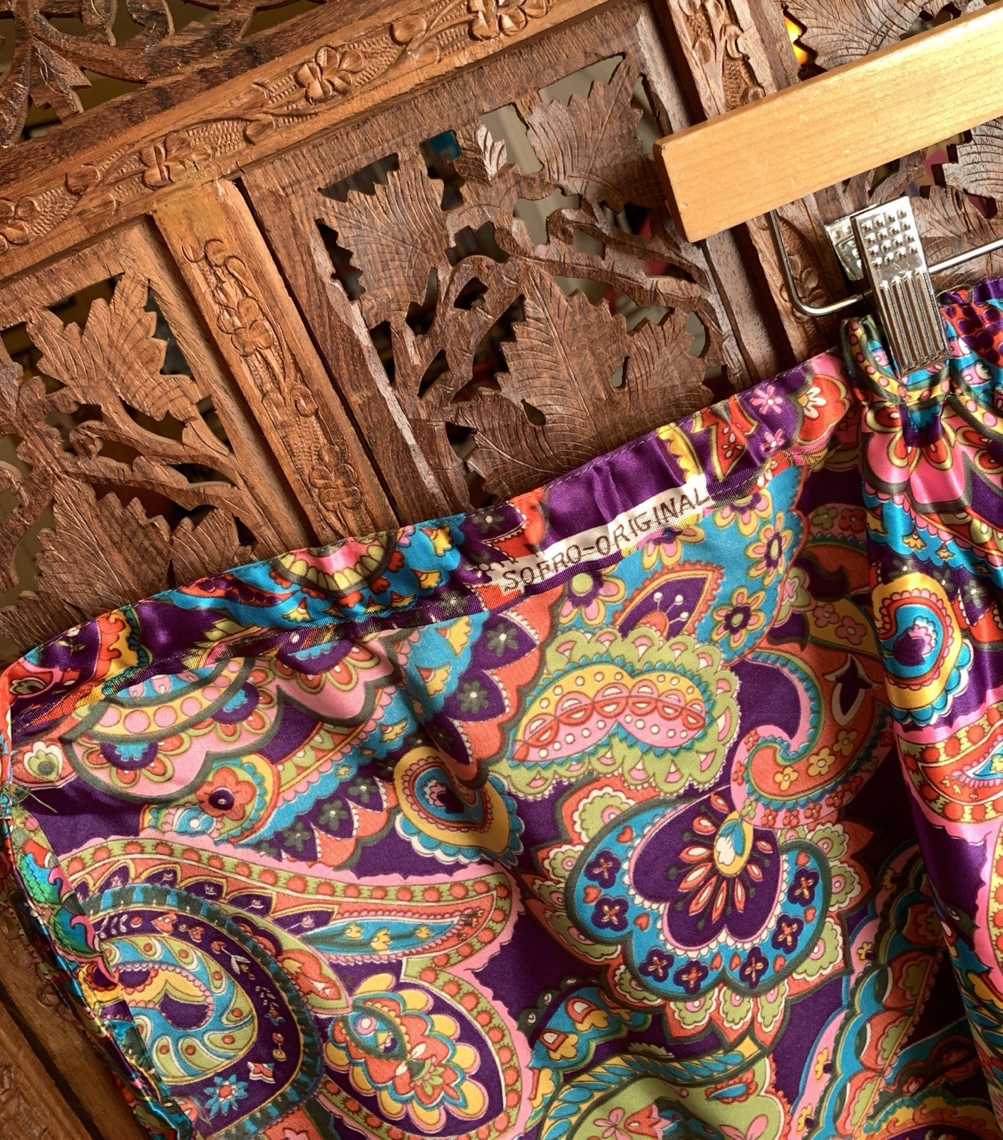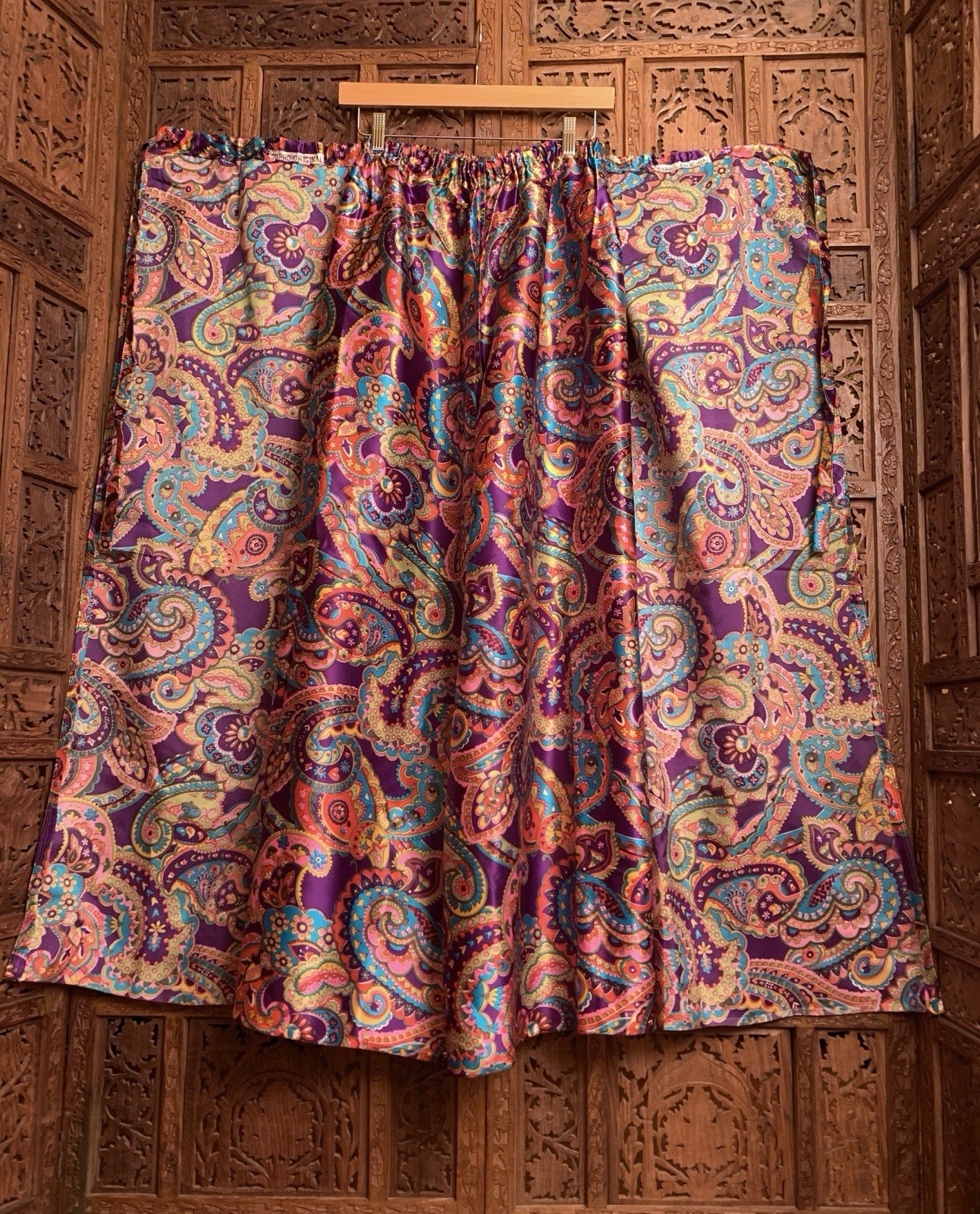 Vtg 70s Psychedelic Flower Power Palazzo Pants Hippie Bell Bottom Wrap Satin