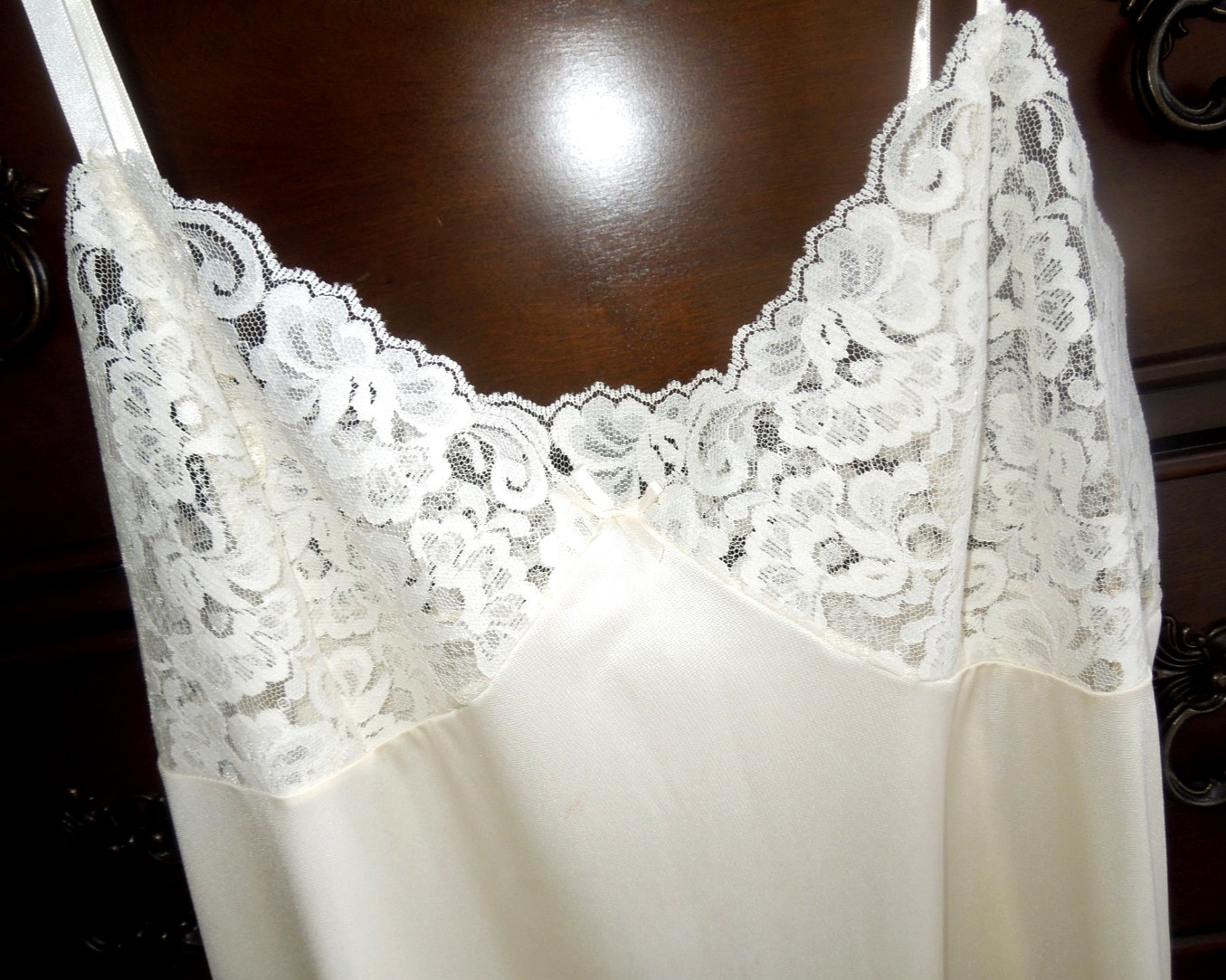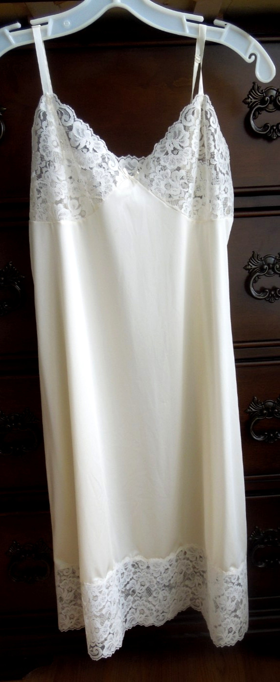 как выглядит VINTAGE BEIGE w/MATCHING LACE WONDERMAID NON-CLING NYLON FULL SLIP SIZE 34 фото