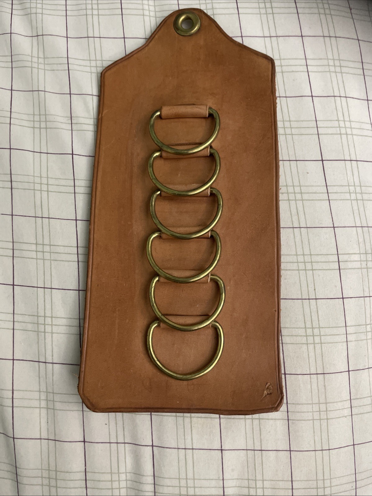VINTAGE TIE RACK - RETRO TIE RACK BELT RACK HOLDER - 6 METAL RINGS LEATHER BACK
