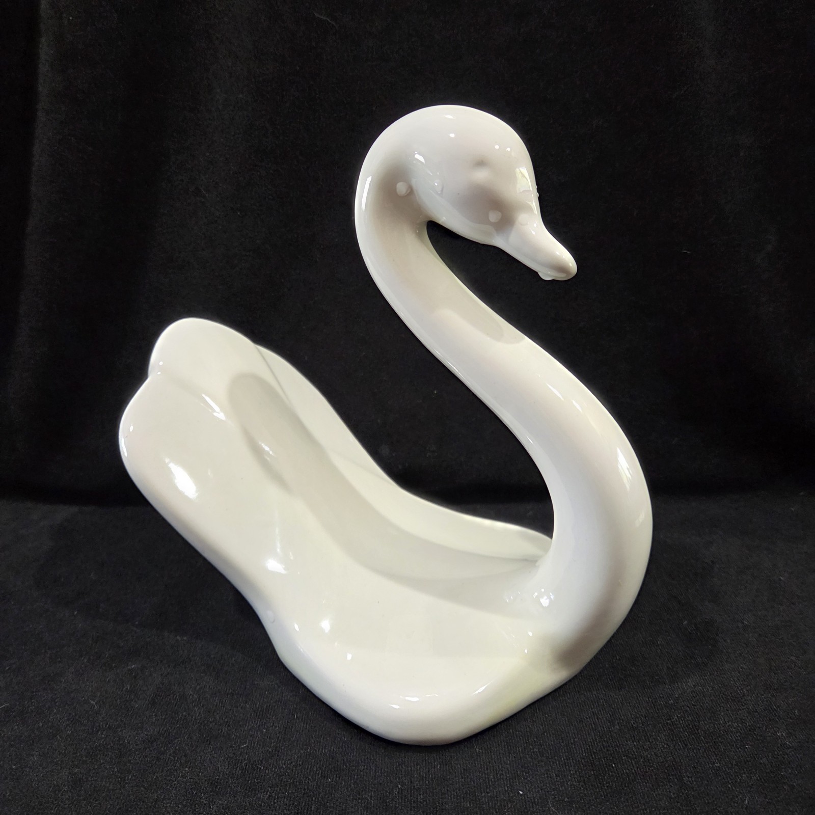Swan Hand Towel Holder Elegant Bathroom Vintage Glazed Ceramic Offwhite
