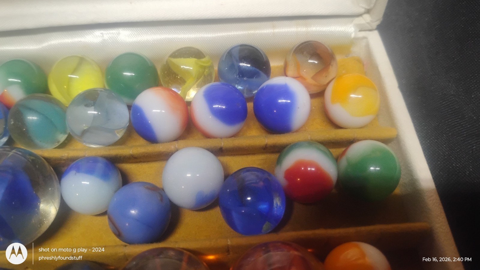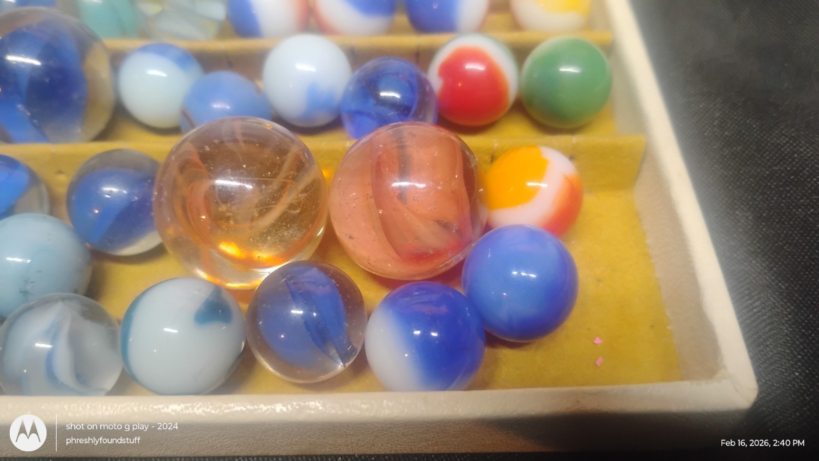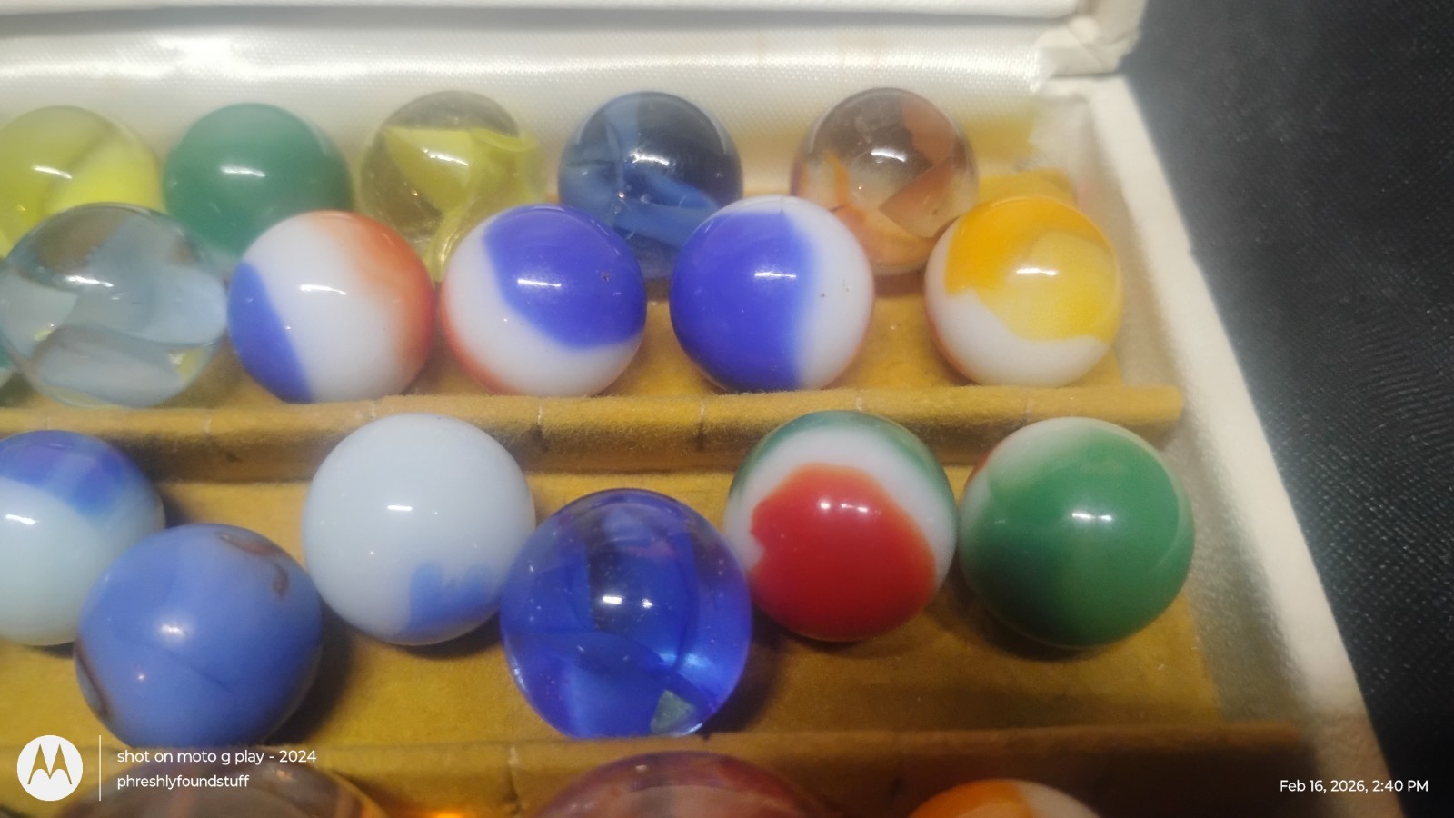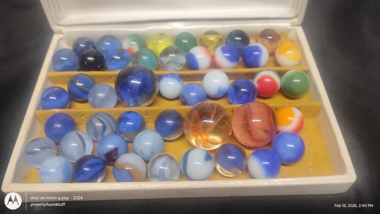 vtg Marbles Marble Lot Estate Find collection w/ Box Swirls Colorful antique nr