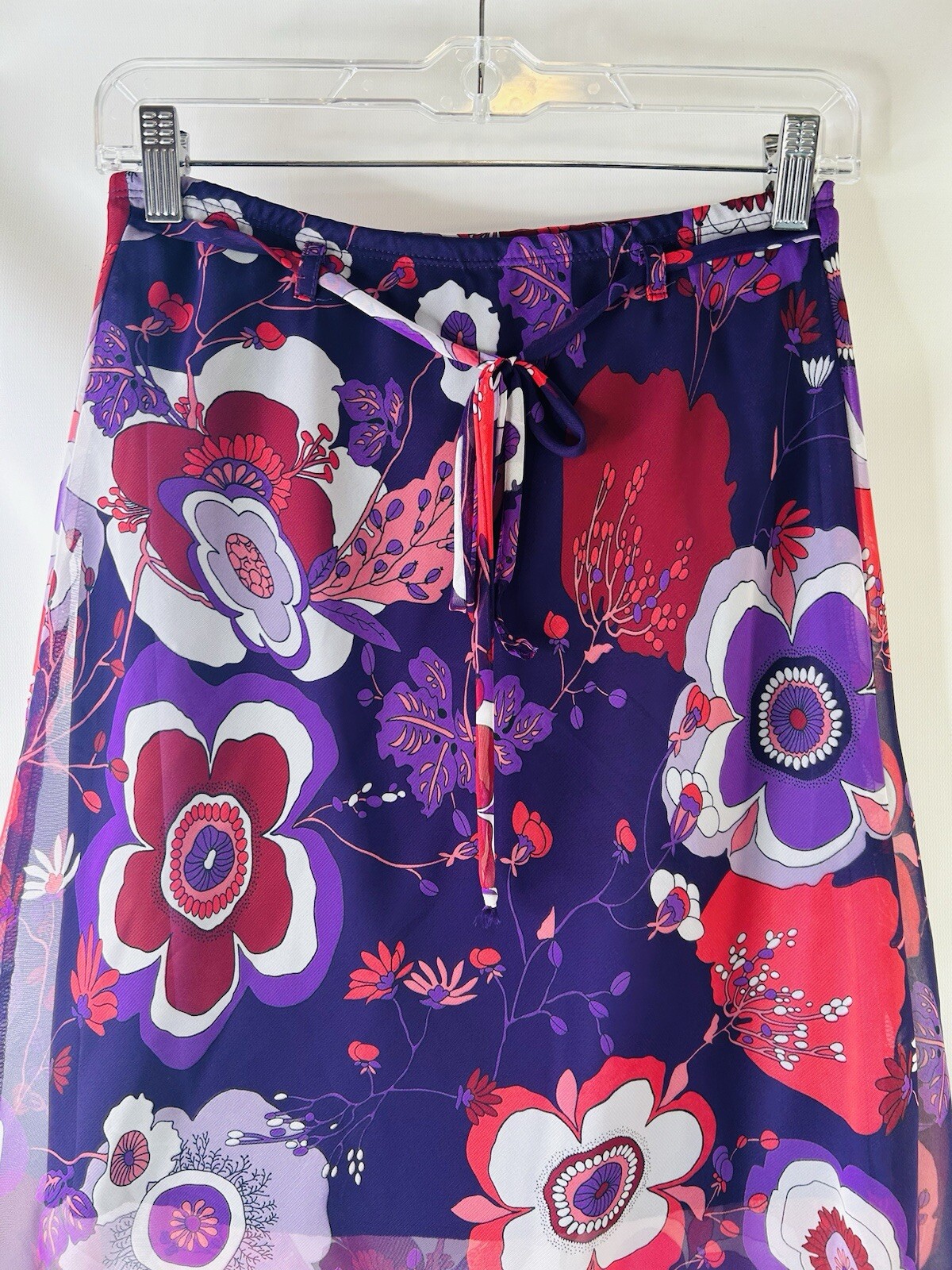 Vintage Y2K Fairy Whimsy Womens Small Rainbow Floral Slip Skirt