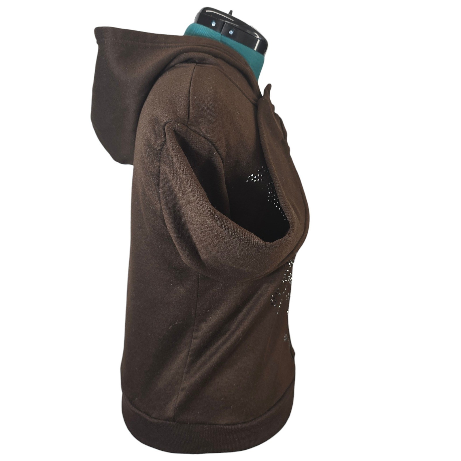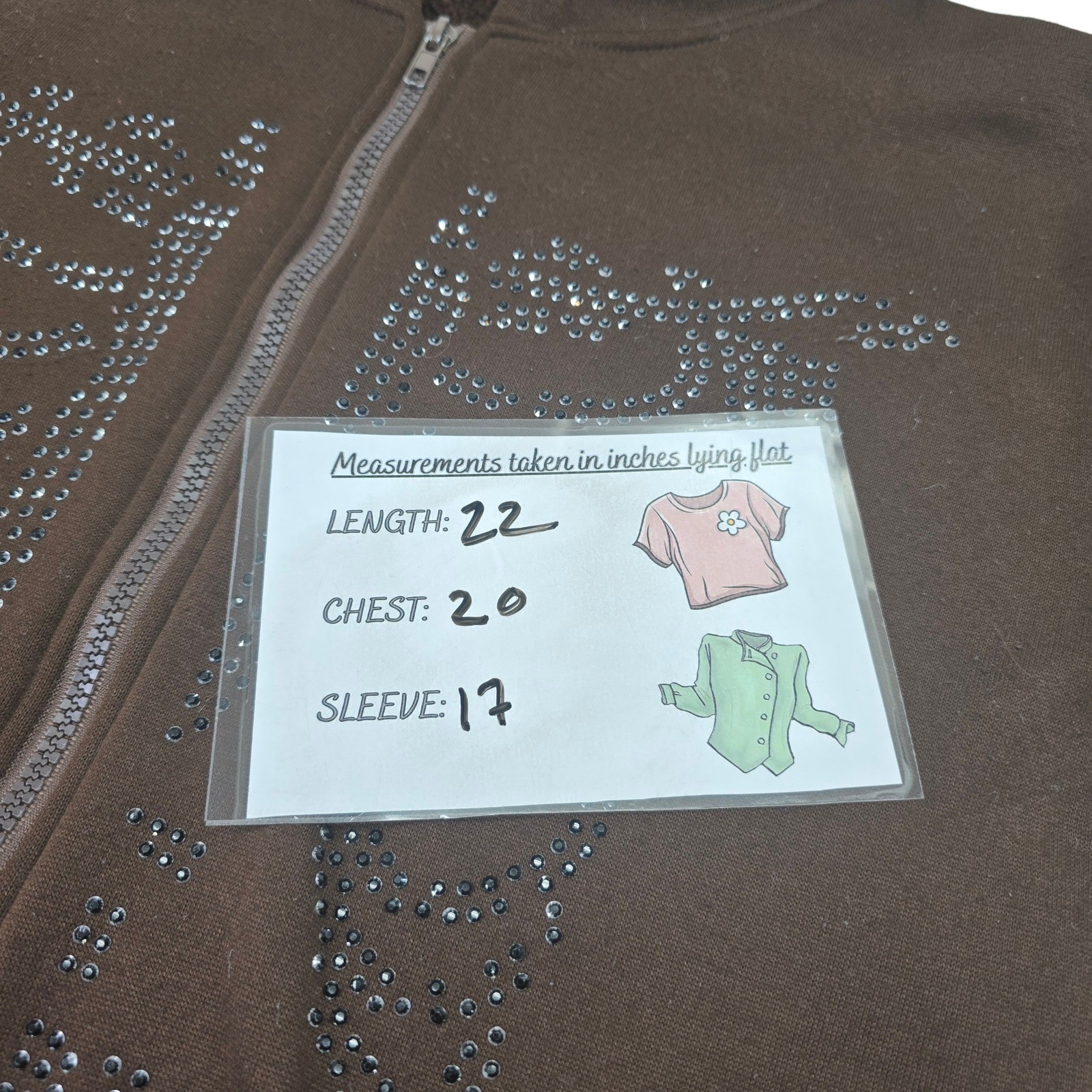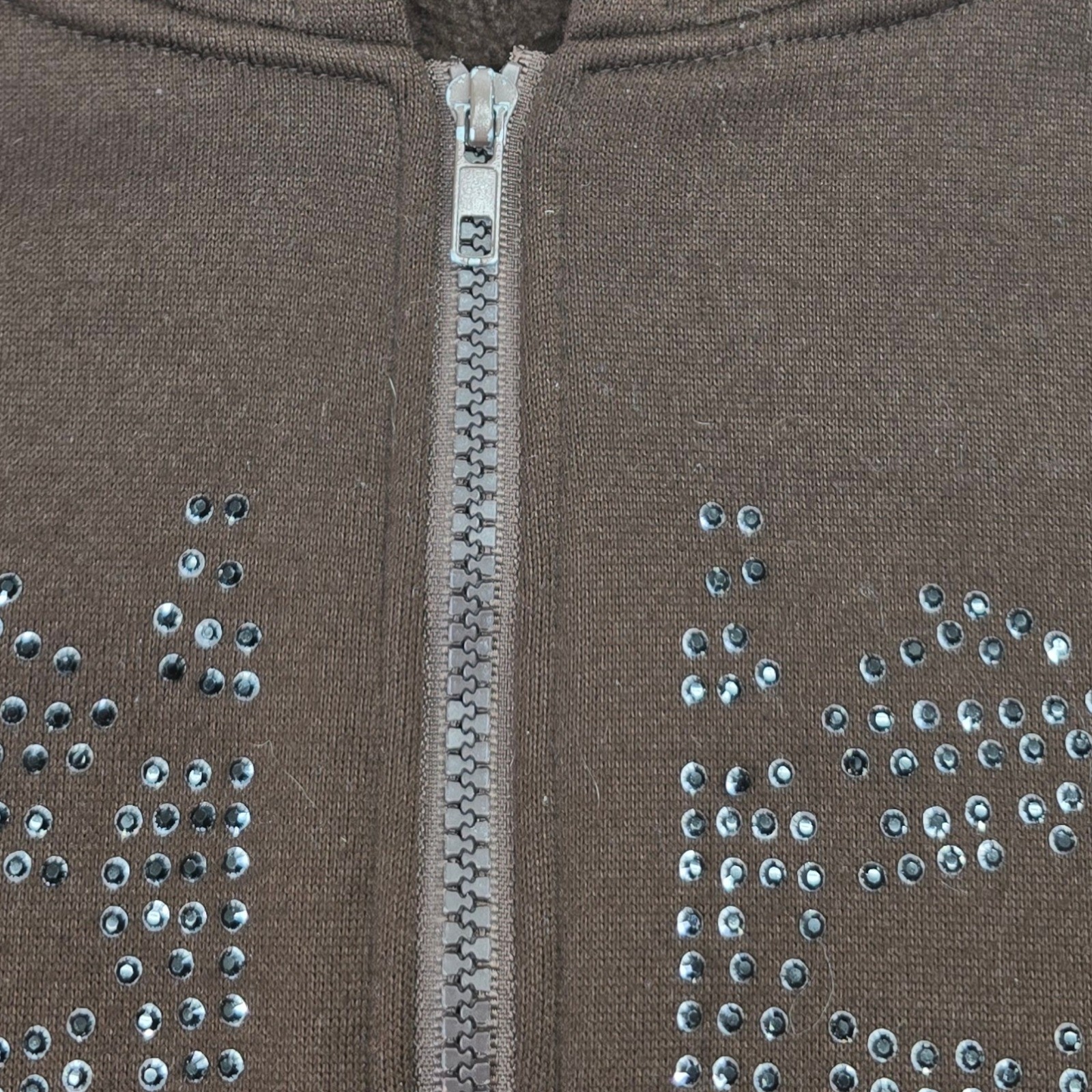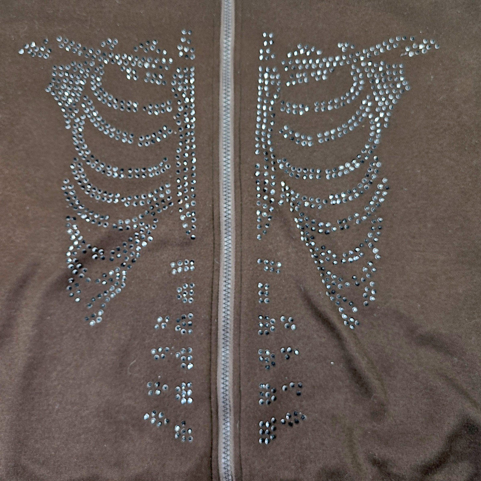 Brown Rhinestone Skeleton Zip Up Hoodie Gothic Streetwear Fleece Sweatshirt 38
