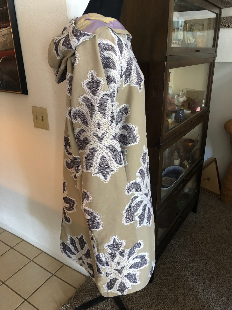 Custom Chinese Tunic Overcoat Coat hooded handmade thick Brocade material Small