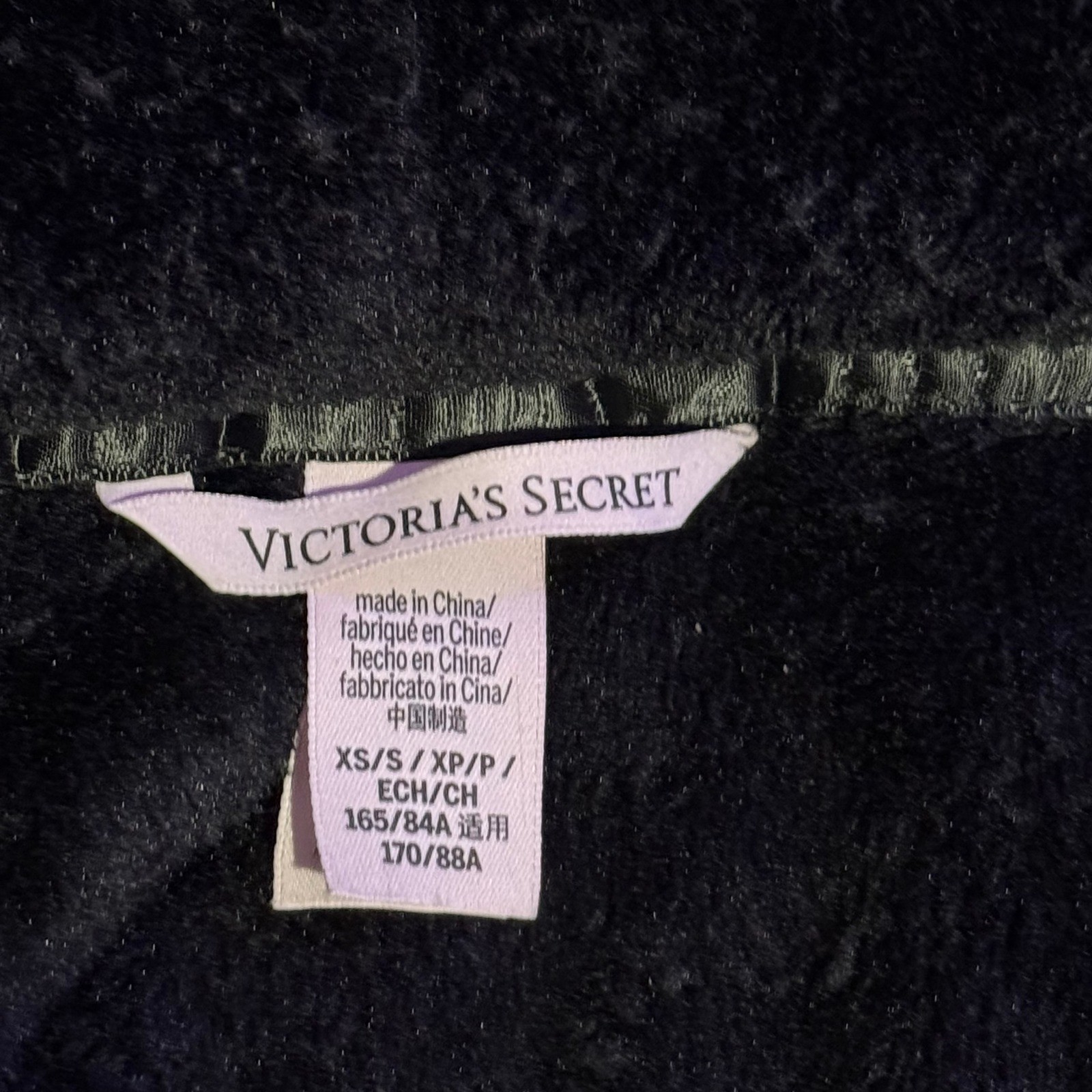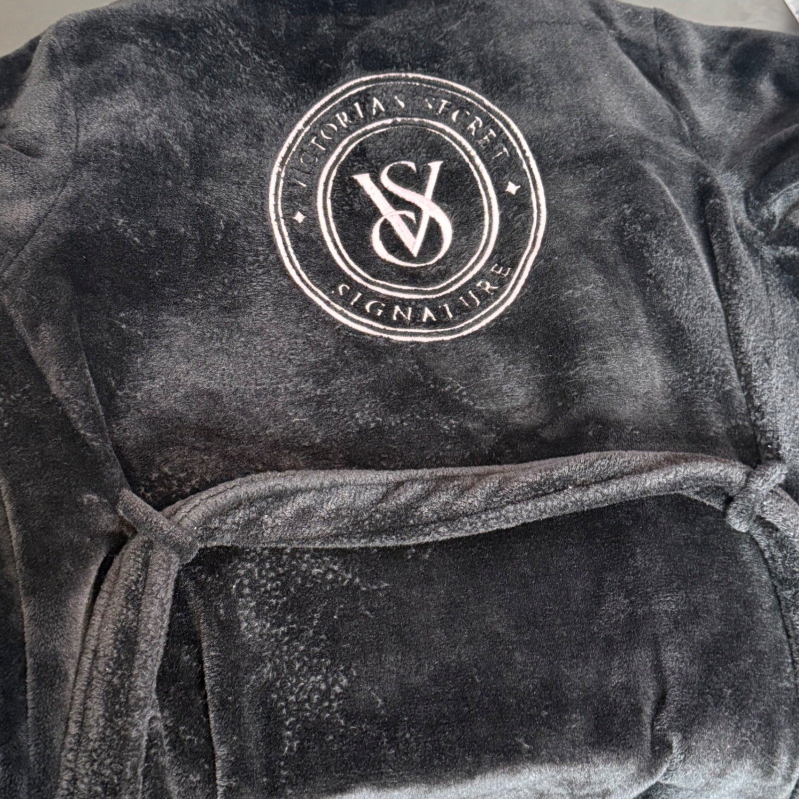 как выглядит Victoria Secret Signature Black Plush Cozy Short Robe XS/S Embroidered Logo фото