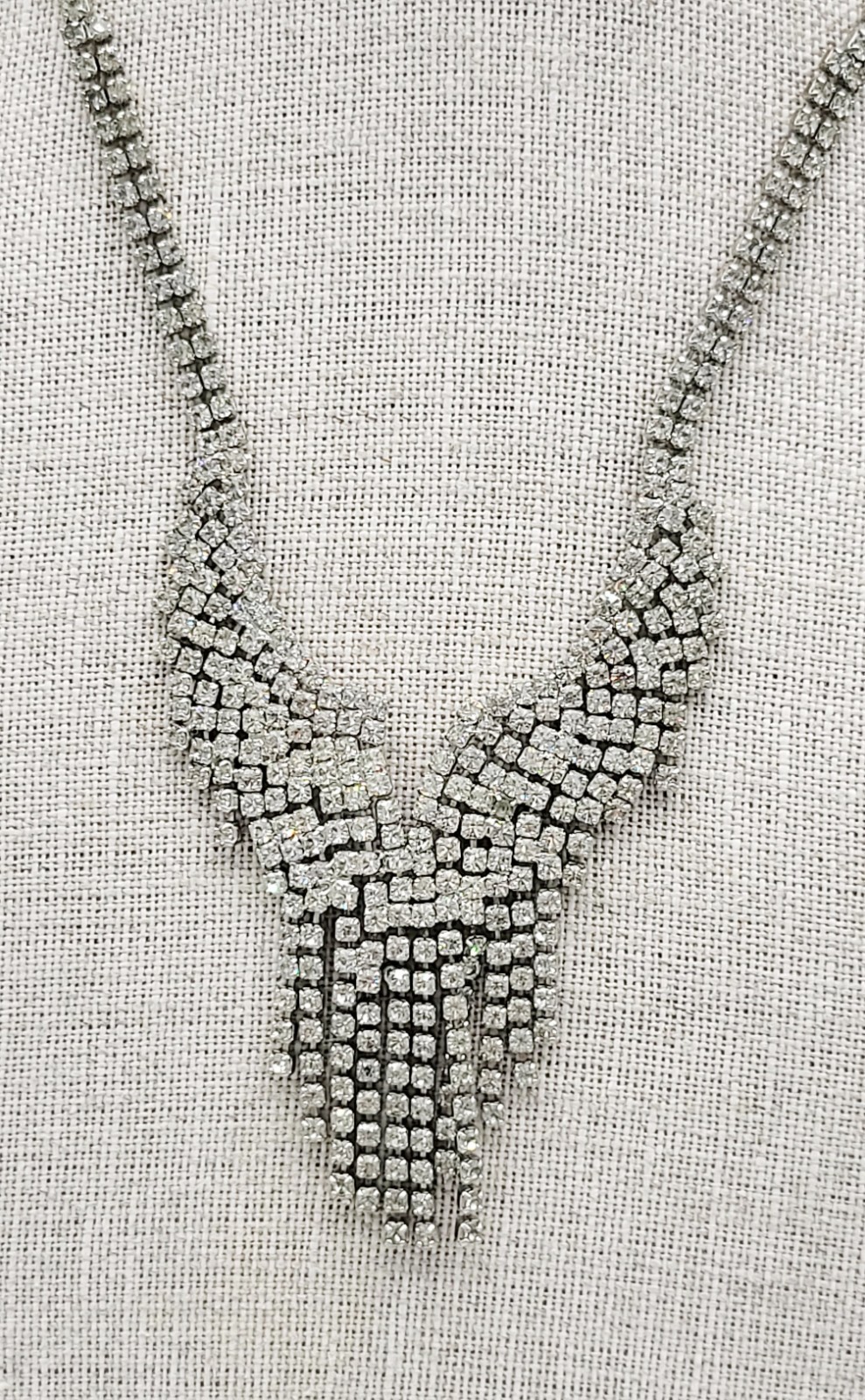 Vintage 16 Clear Rhinestone necklace, Bib style with swags