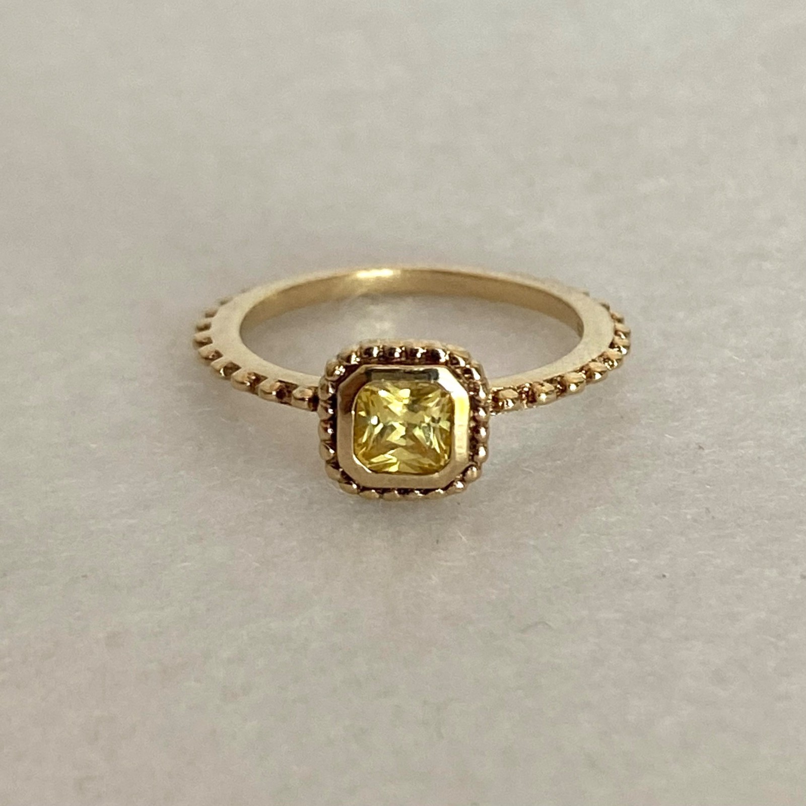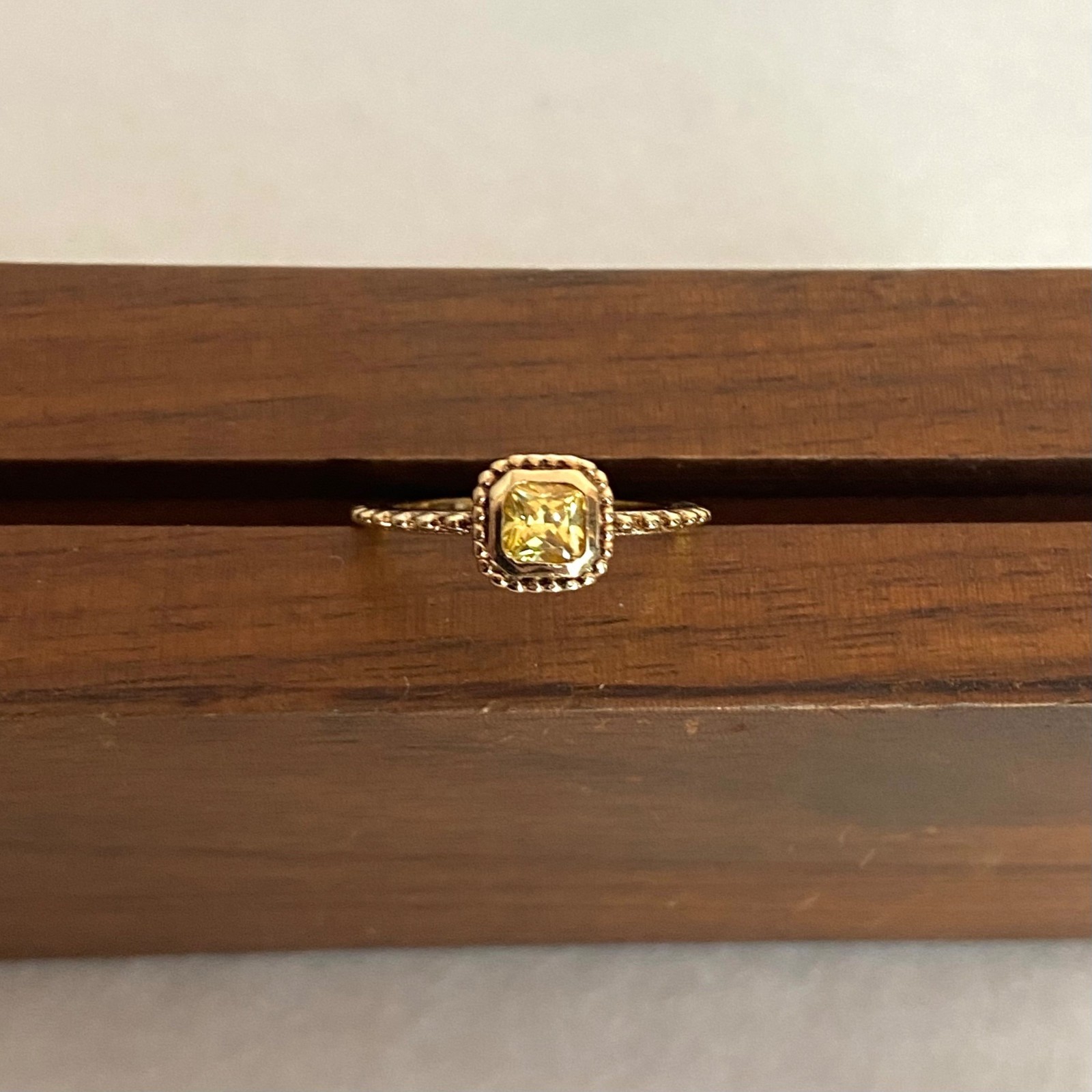 как выглядит Gold Vermeil Over Sterling Silver 925 Square Yellow Solitaire Ring Sz 5 фото